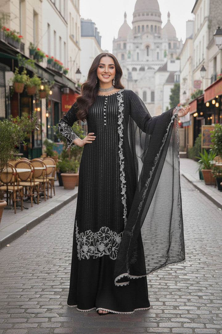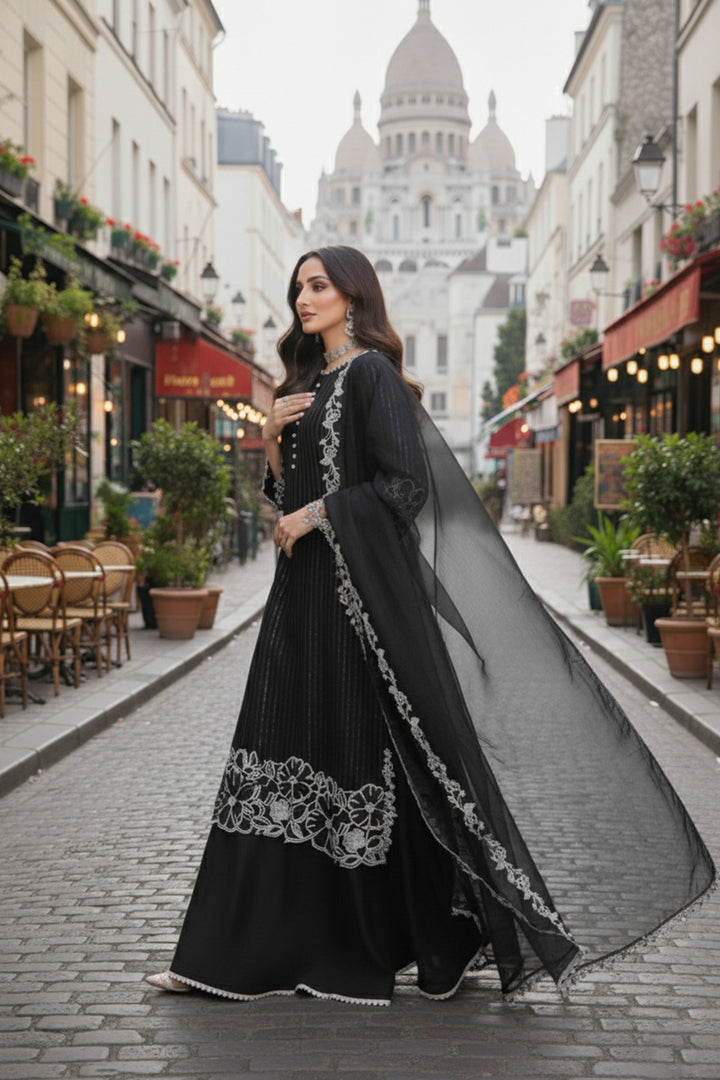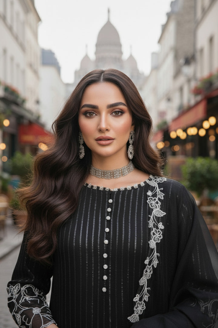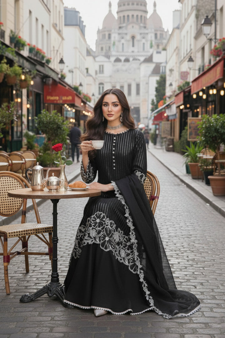 NOIR ELEGANCE – 3PC COTTON NET & ORGANZA LUXURY PRET