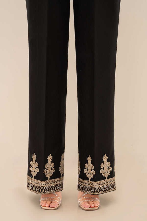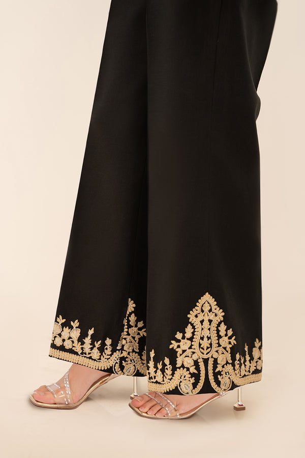 Product Description  Complete your eid look with this black shalwar with embroidered spray. Shalwar Embroidered X-Small Small Medium Large Margins Waist 13" 14" 15" 15.5" (+ -) 0.2" Length 36"...