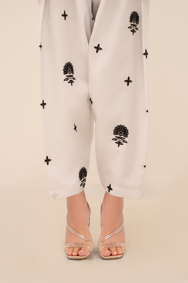Product Description  Complete your eid looks with this embroidered shalwar. Shalwar Embroidered X-Small Small Medium Large Margins Waist 13" 14" 15" 15.5" (+ -) 0.2" Length 36" 36" 37" 38"...