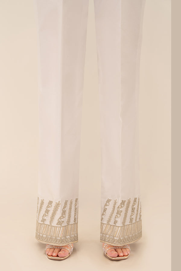 Product Description  Complete your eid look with our off white boot cut pants with embroidery. Bootcut Style Extra Small Small Medium Large Margins Waist 13" 14" 15" 15.5" (+ -)...