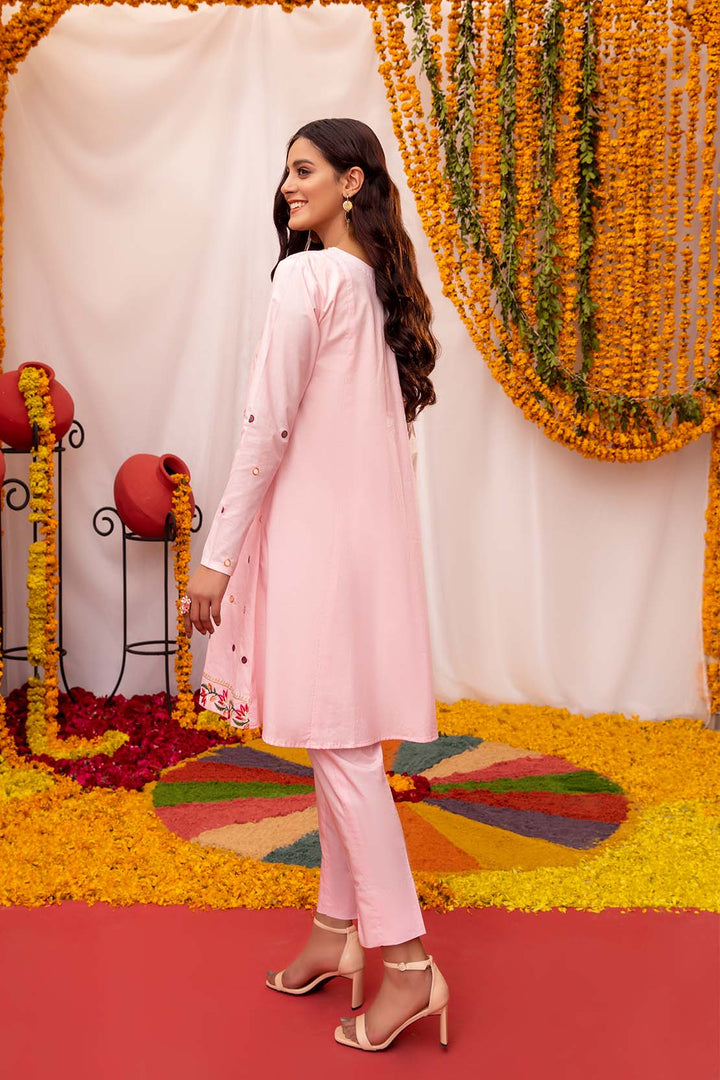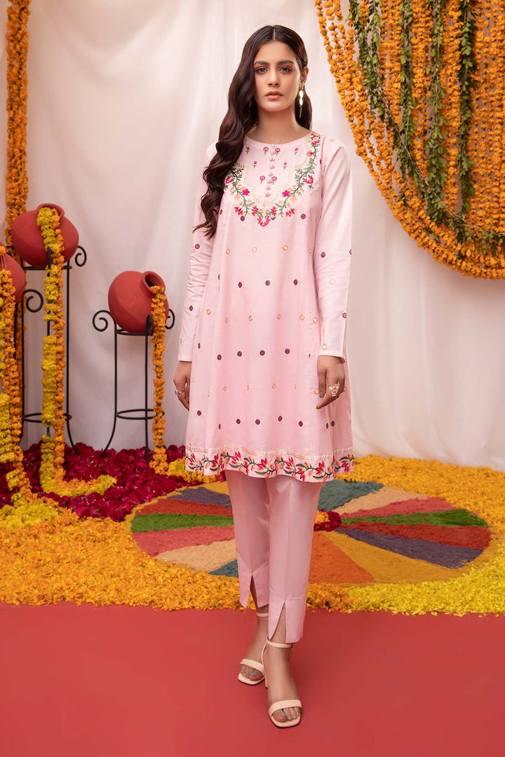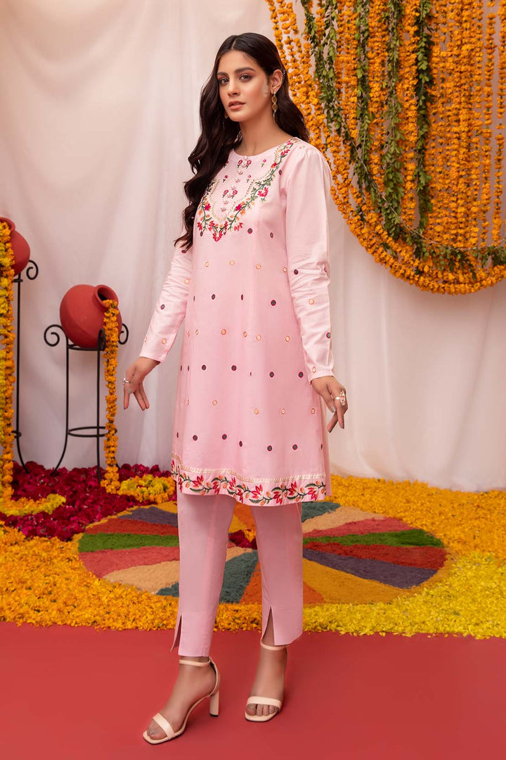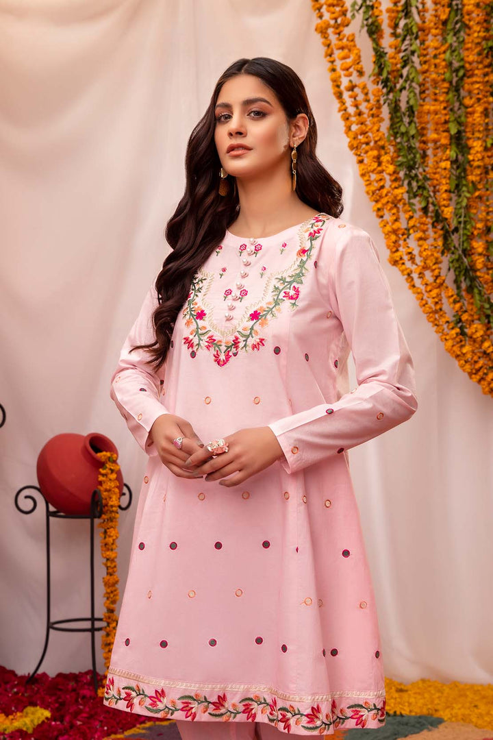 Ready-To-Wear Solid Embroidered Lawn Fusion Kurti