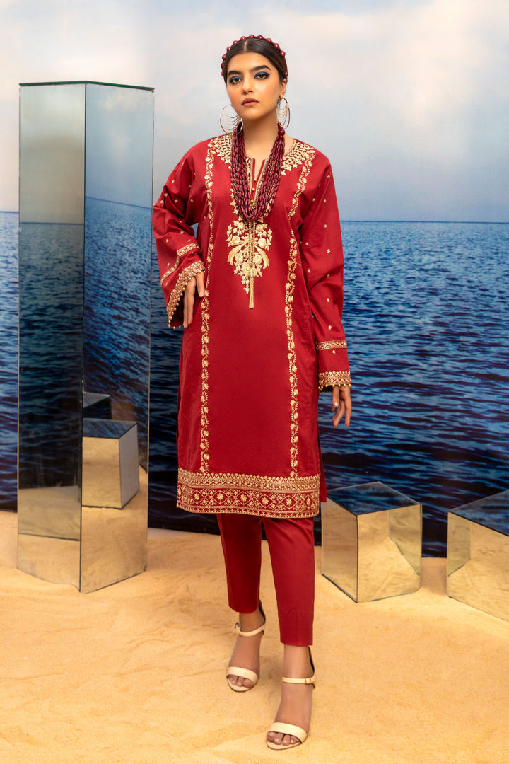 Solid Embroidered Lawn Shirt