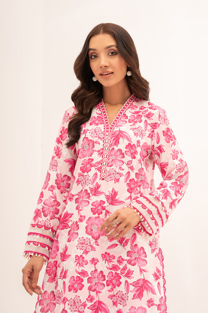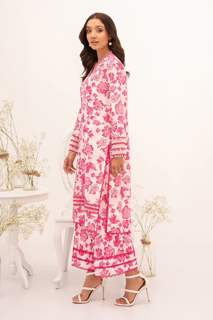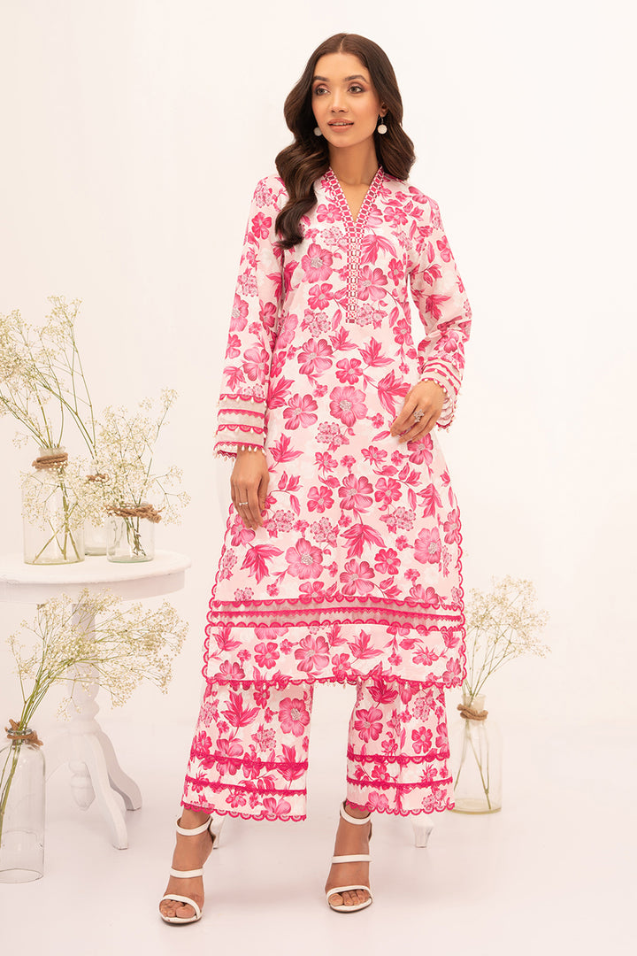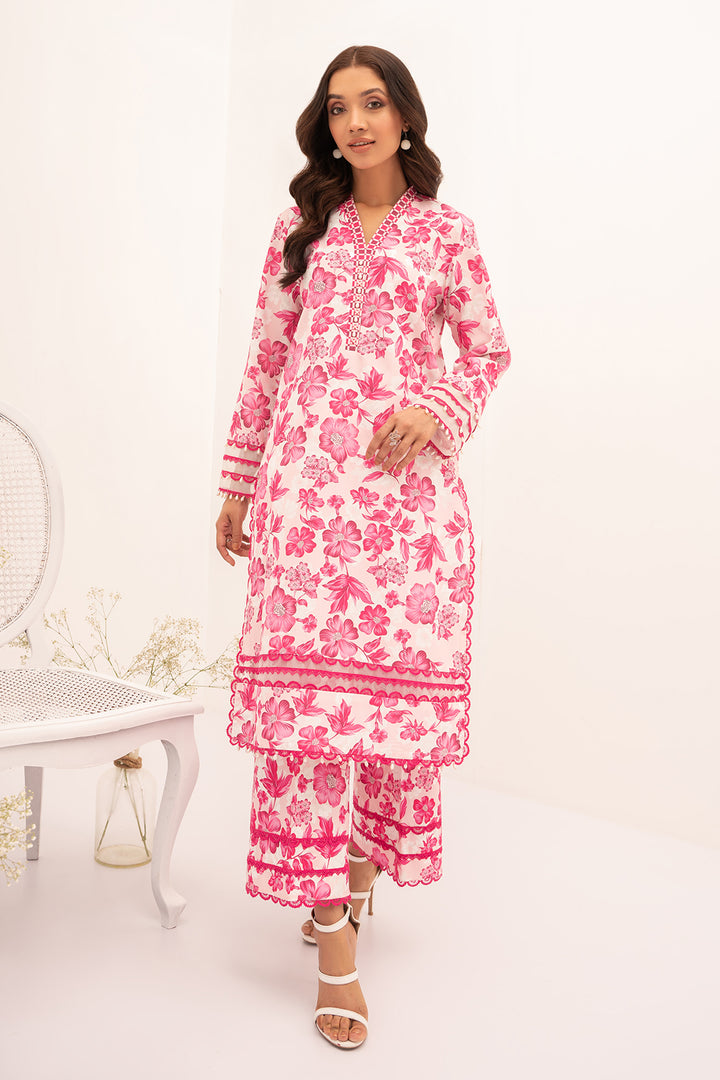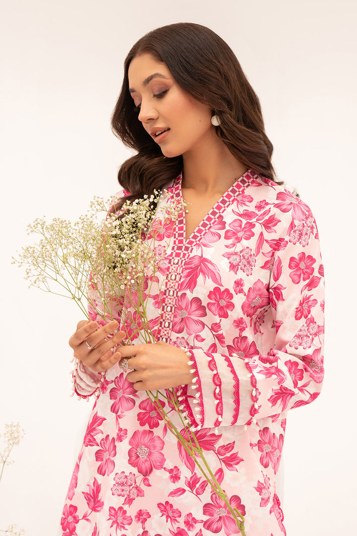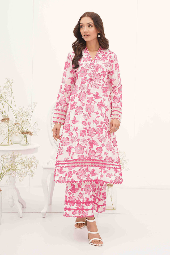 Blossom with elegance in a delicate pink and white floral-printed 2 piece lawn unstitched suit.
