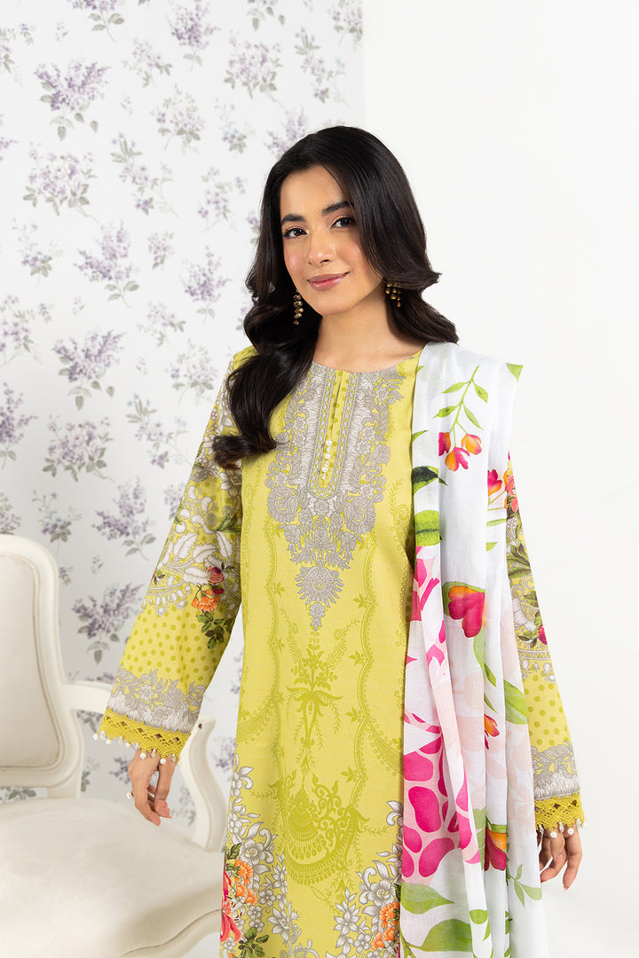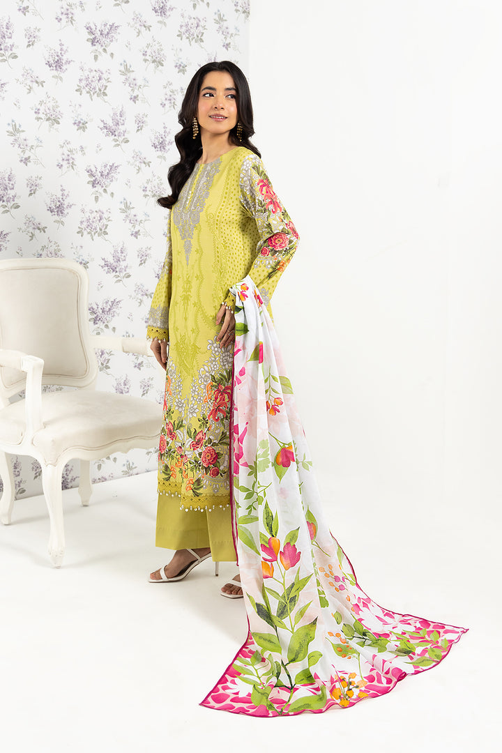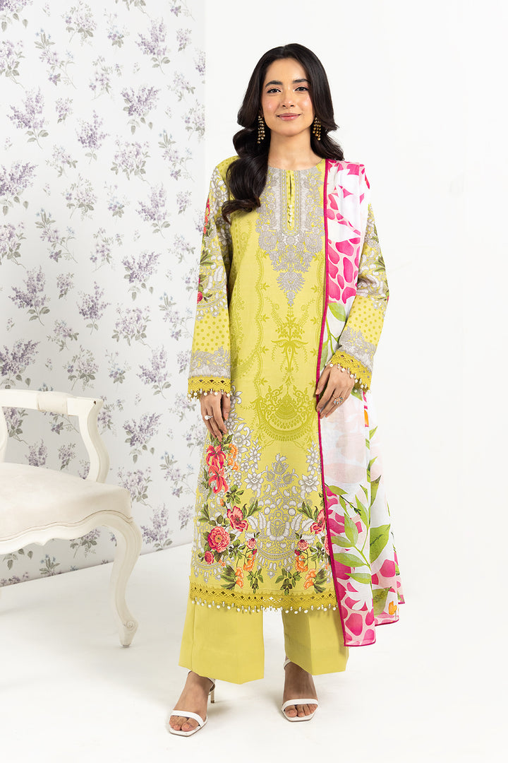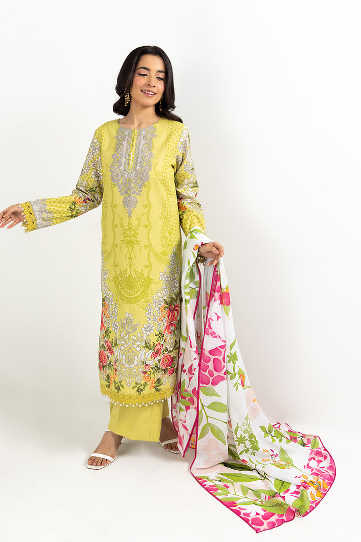 Brighten up your day with our fresh lime unstitched 3-piece lawn suit (Without Embroidery).
