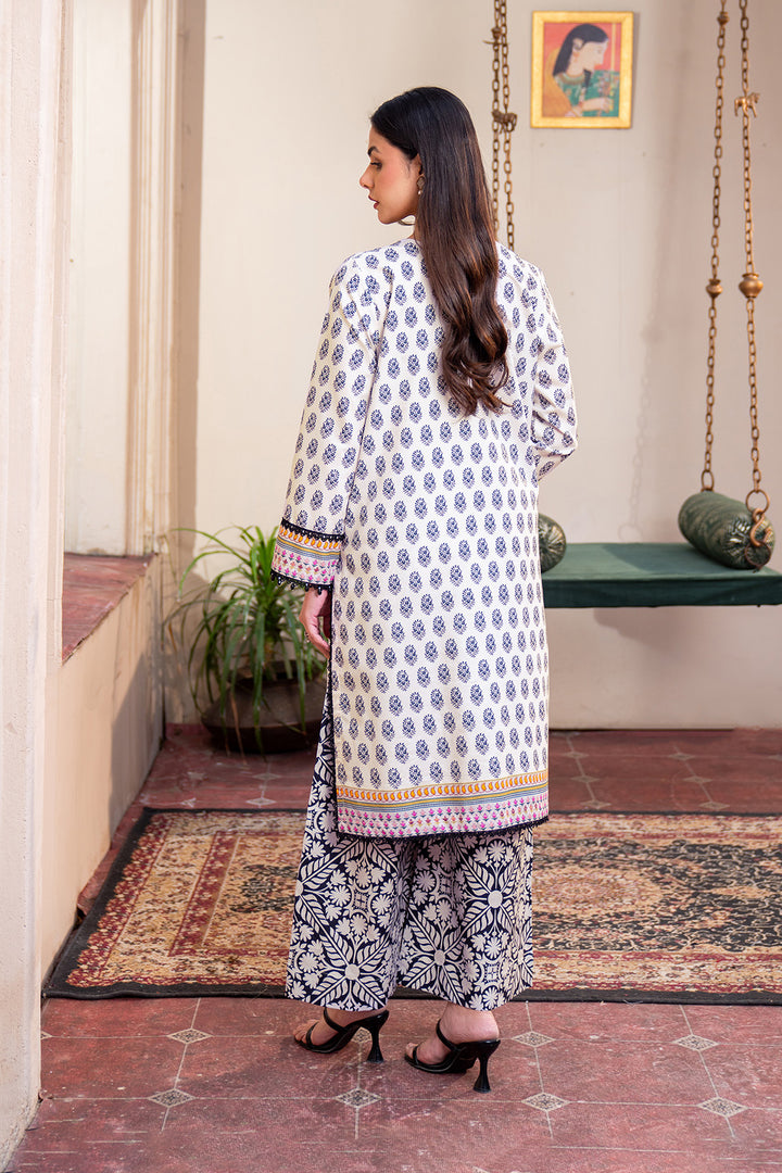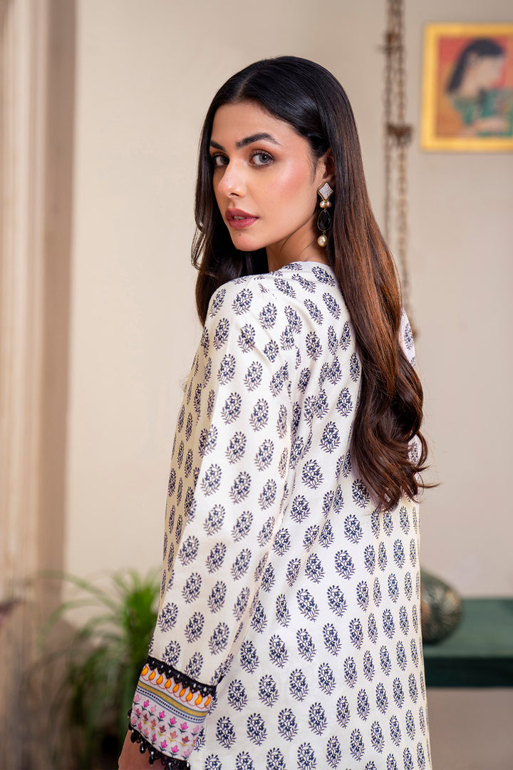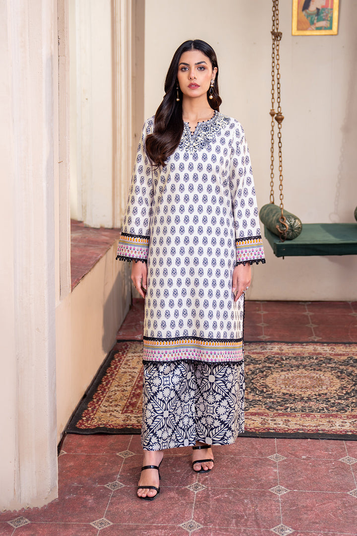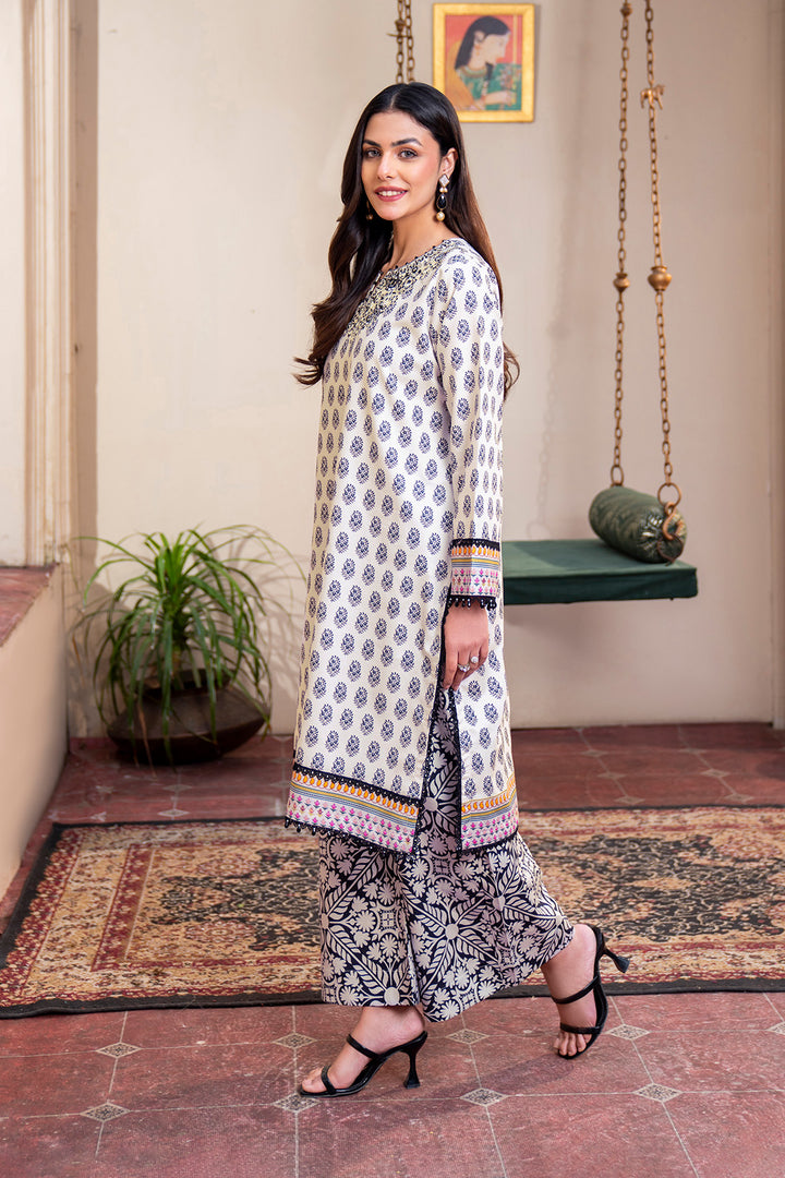 Upgrade your style closet with our two-piece printed embroidered suit, featuring digital printed lawn shirt paired with printed trousers for a contemporary look.