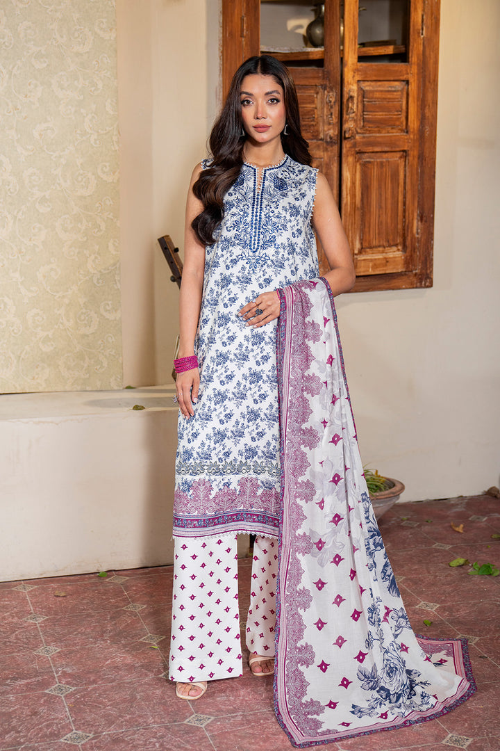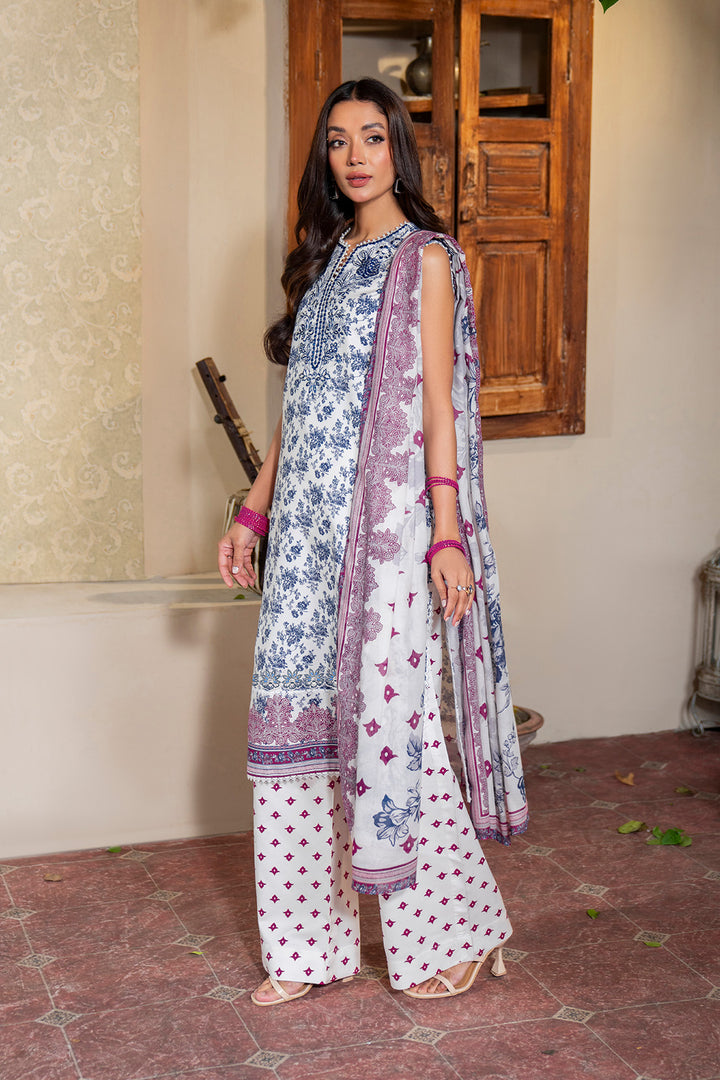 Unveilling fusion of vibrant prints and intricate embroidery with our 3-piece digital printed lawn ensemble, featuring a beautifully Lawn printed shirt, trousers, and dupatta, enhanced with embroidered neckline and borders for an elegant finish.