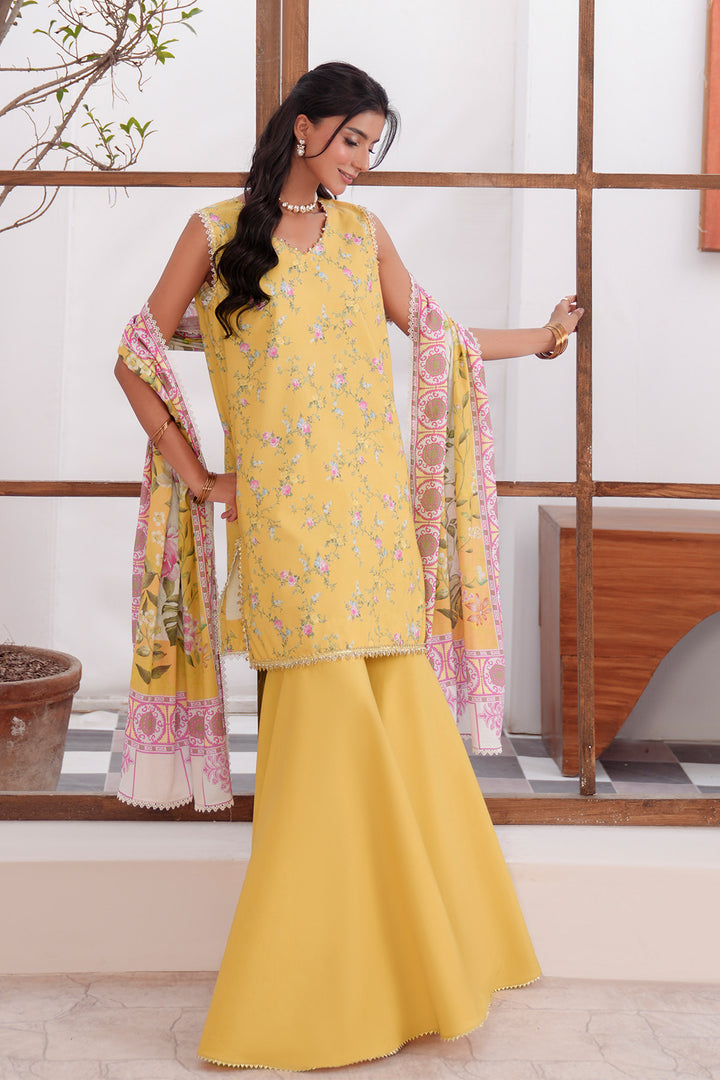Elevate your style with our three-piece printed Lawn suit design featuring a lawn shirt paired with a printed lawn dupatta and dyed trousers. Add this fashionable piece to your Embroidered lawn suit collection.