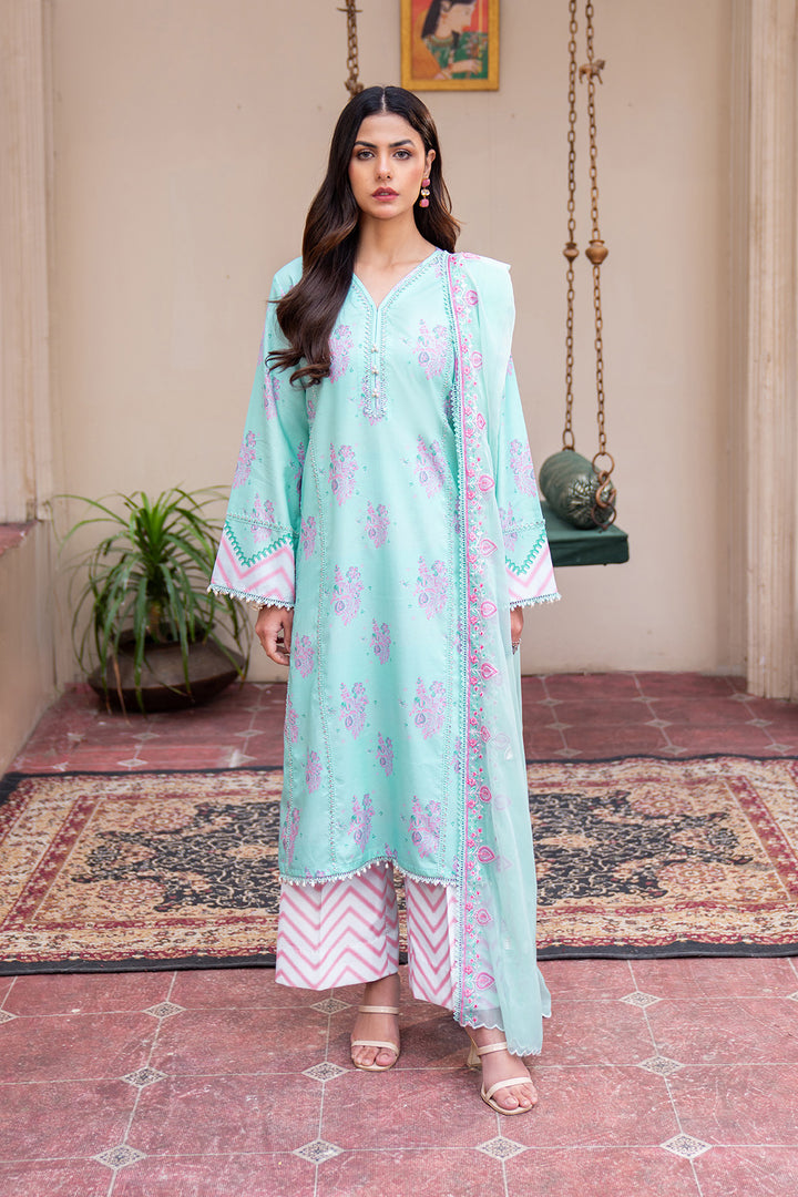 Step into sophistication with our digital printed lawn suit, complemented by an embroidered chiffon dupatta for a striking effect.