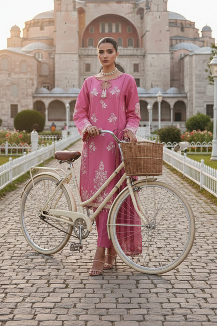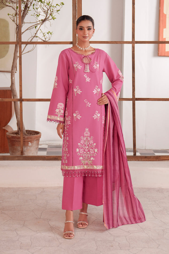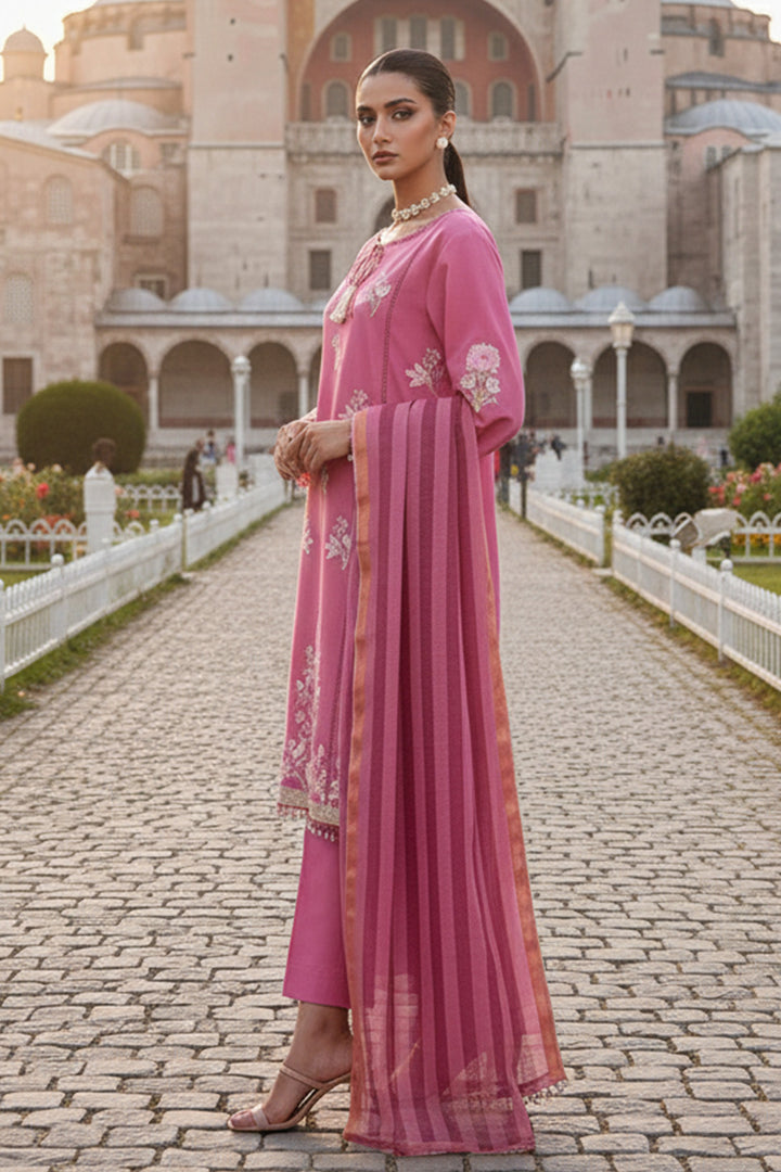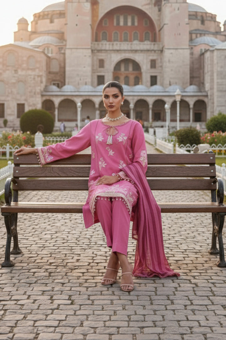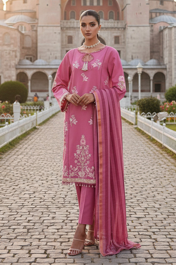 Embroidered - 3 Pc Cotton Lawn Suit (Dyed Jacquard Dupatta)