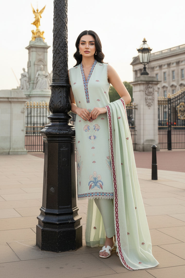 Embroidered - 3 Pc Cotton Lawn Suit (Dyed Embroidered Dupatta)