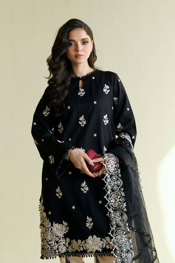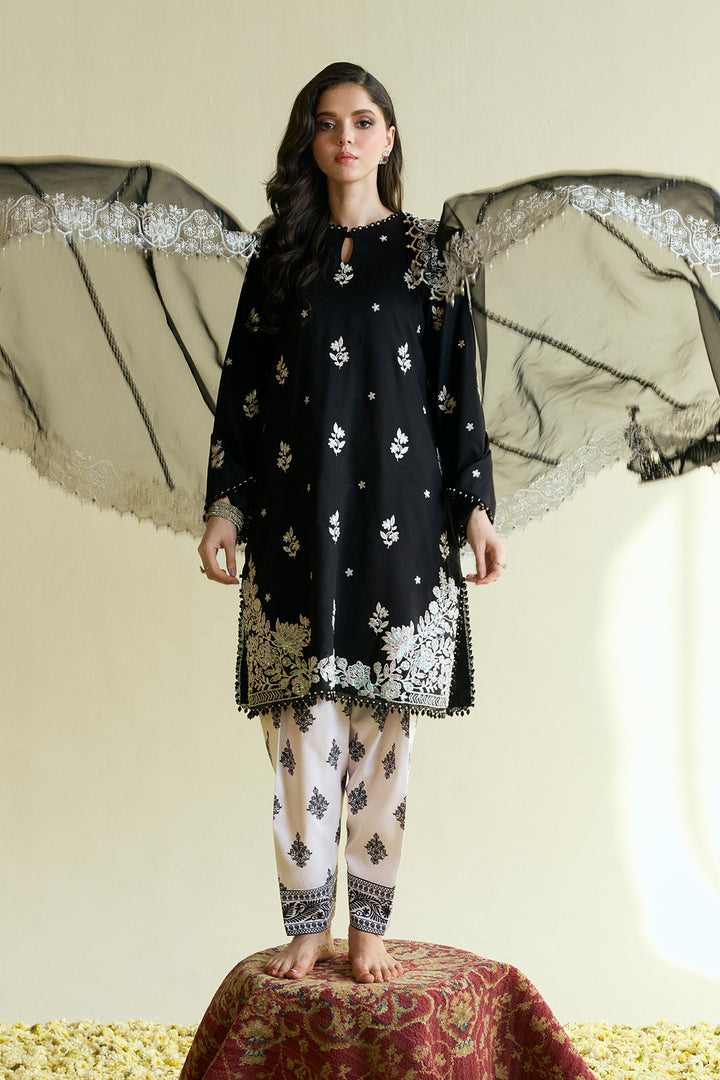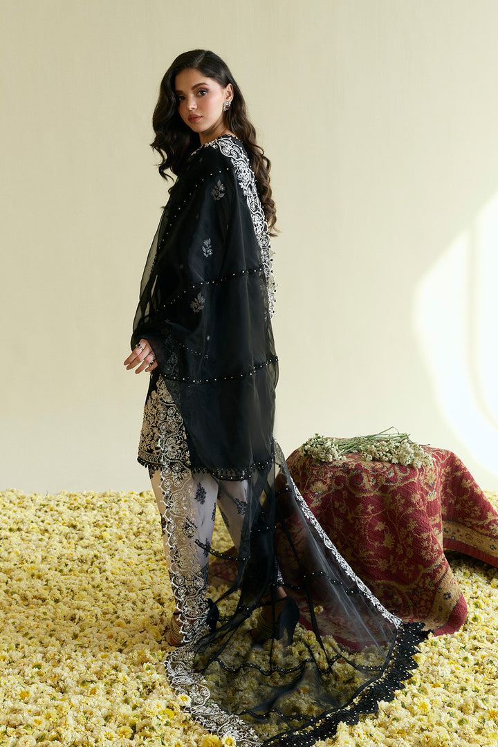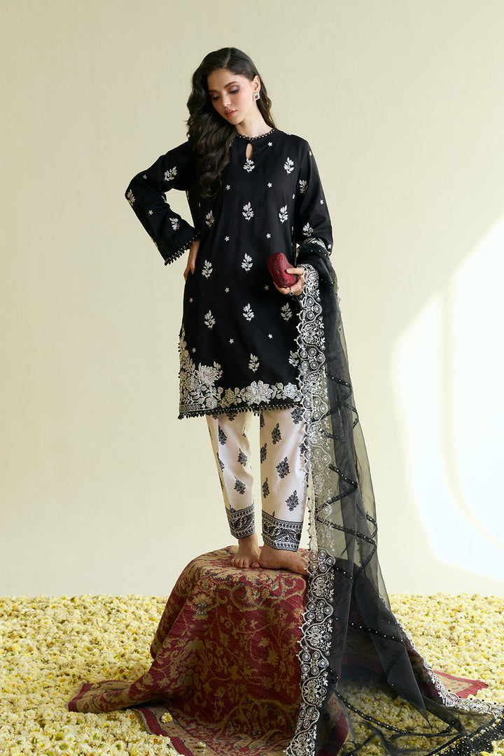 This 3-pc Eid Premium lawn printed & Embroidered suit reflects timeless elegance, while the delicately embroidered organza dupatta adds an airy, ethereal touch. This ensemble makes a quiet yet powerful statement, where every detail whispers sophistication, and grace is woven into every seam. Make a statement in our Festive collection.