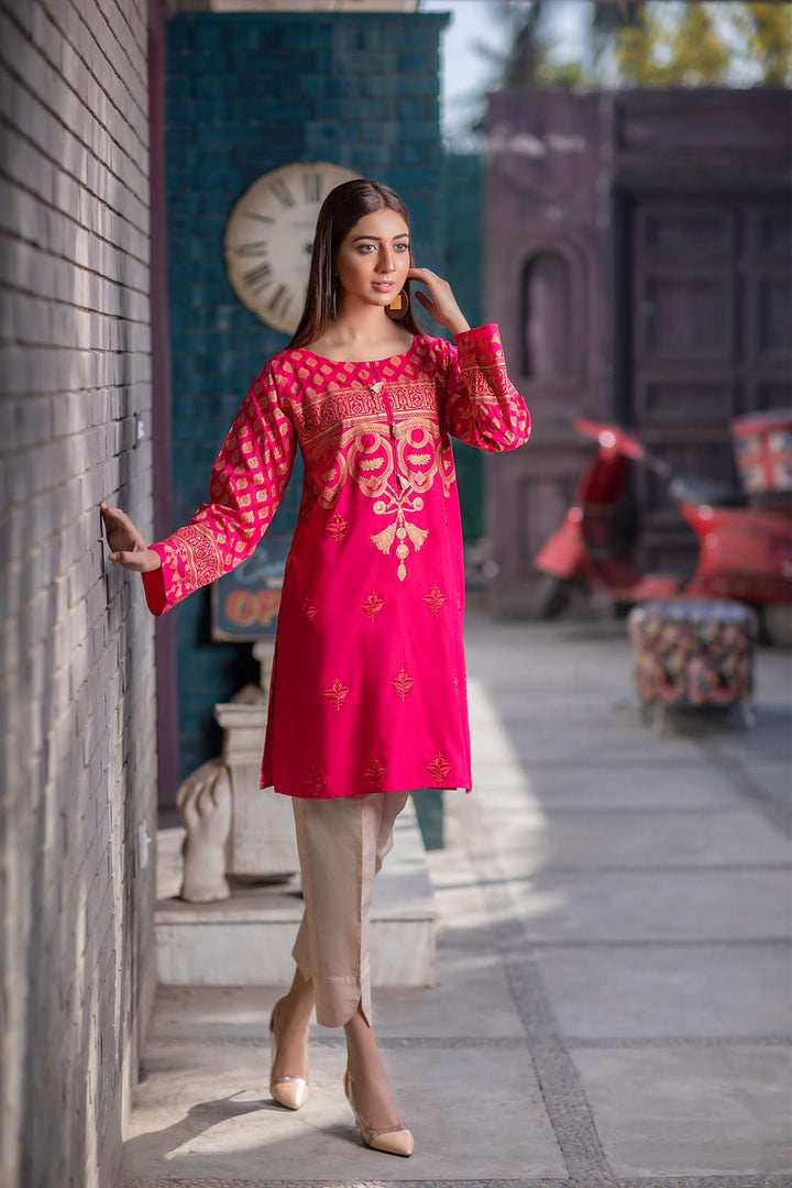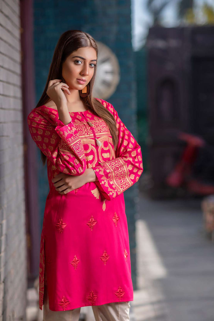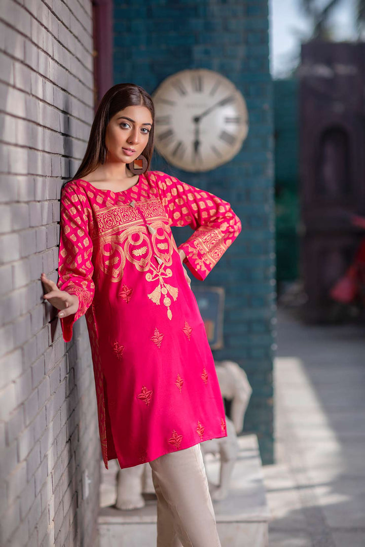 Paste-printed Lawn shirt with embroidery