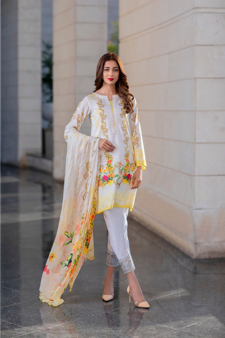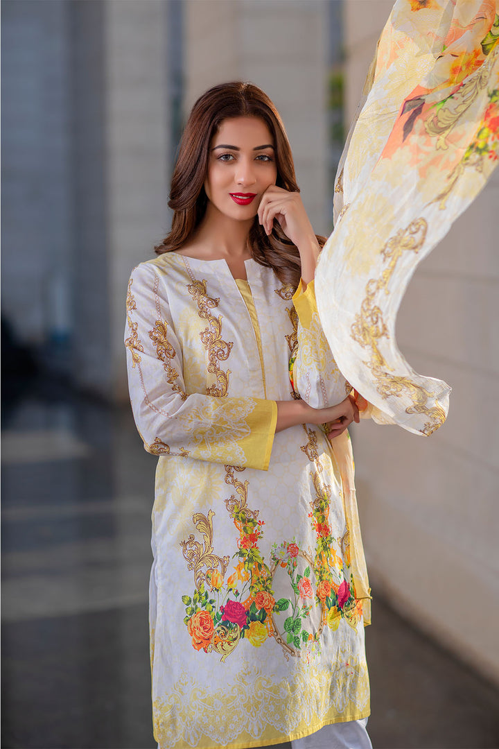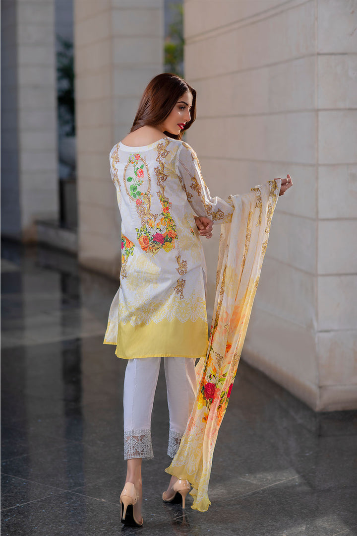 Digitally printed Lawn shirt with printed Chiffon dupatta