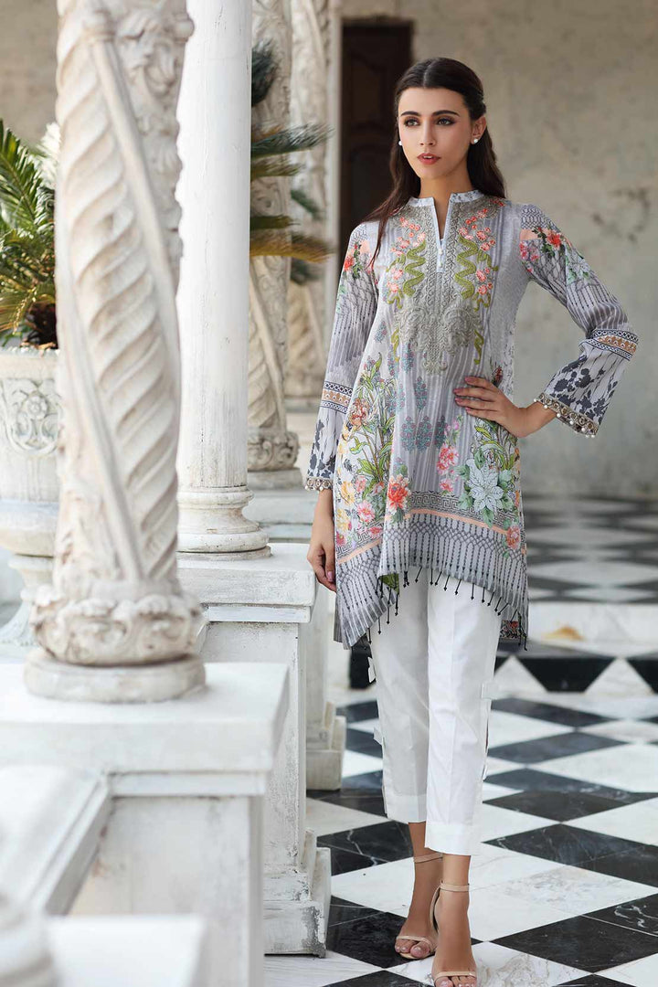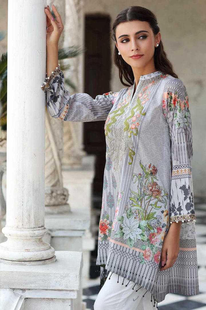 Digitally printed 3.1m Lawn shirt with embroidered neckline