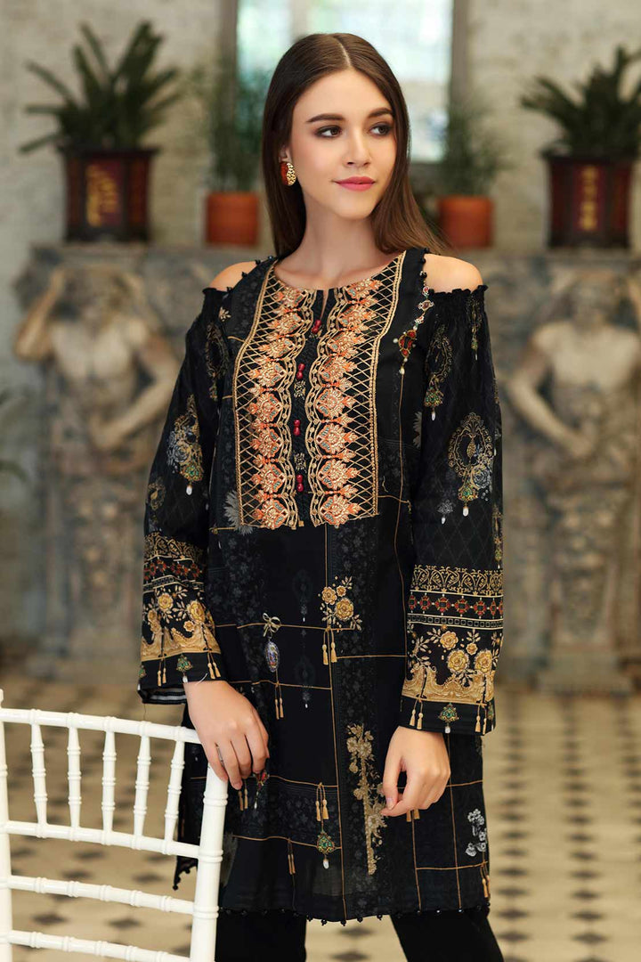 Digitally printed 3.1m Lawn shirt with embroidered border