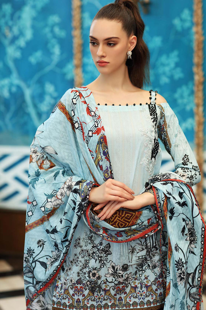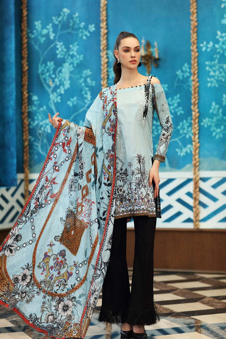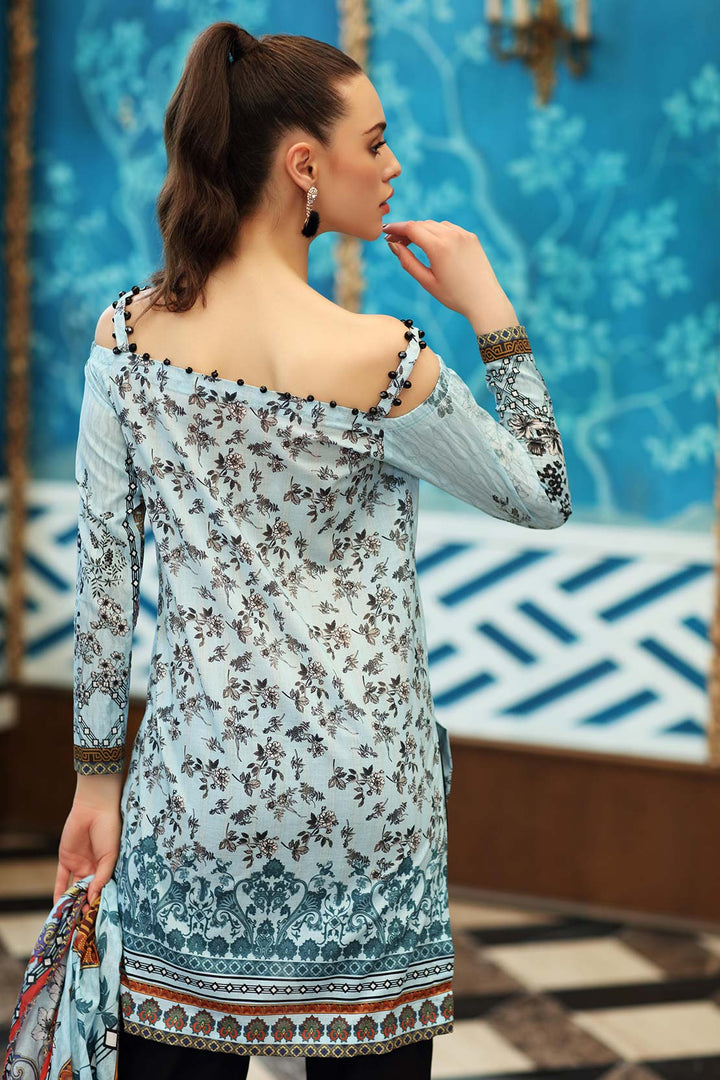 Digitally printed 3.1m Lawn shirt with embroidered patches