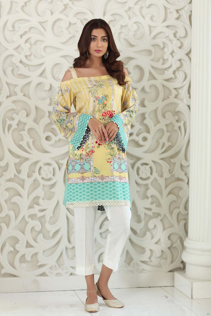 Digitally printed 3.1m Lawn shirt with embroidered border and patch