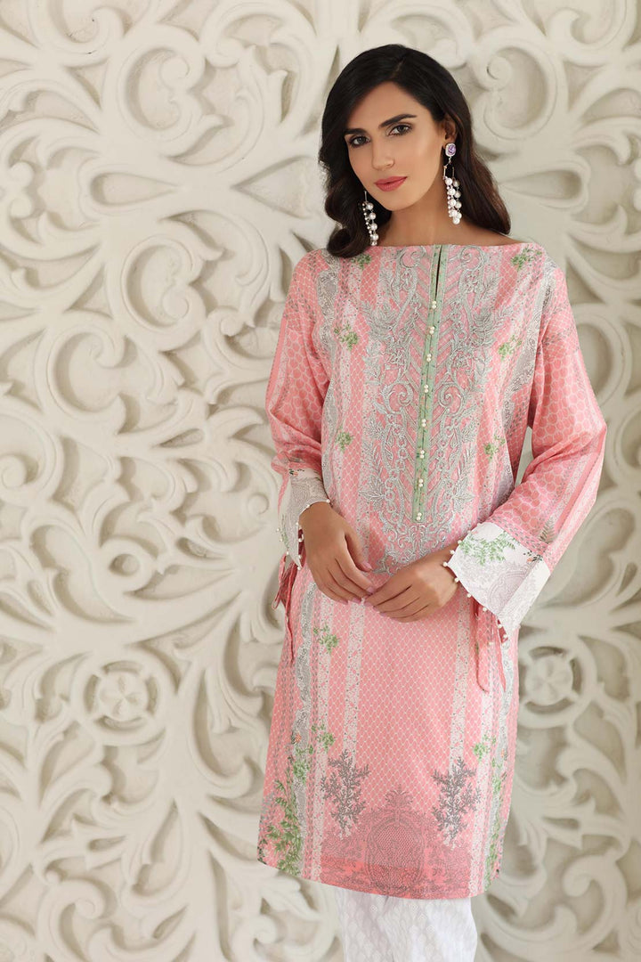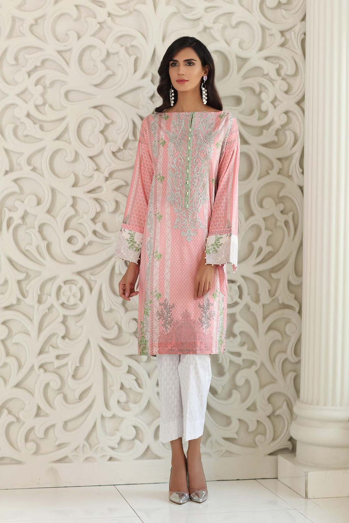 Digitally printed 3.1m Lawn shirt with embroidered neckline