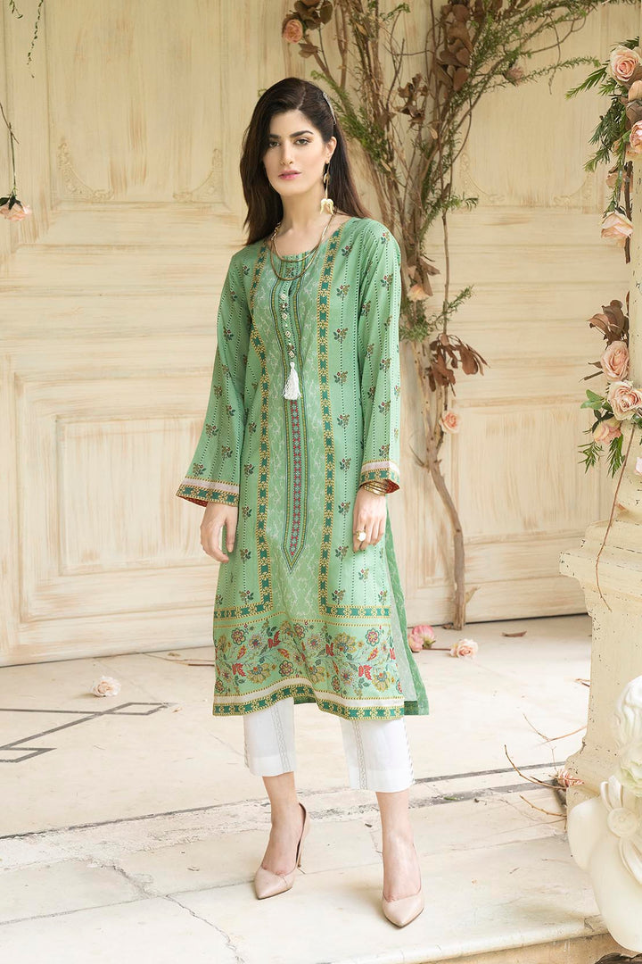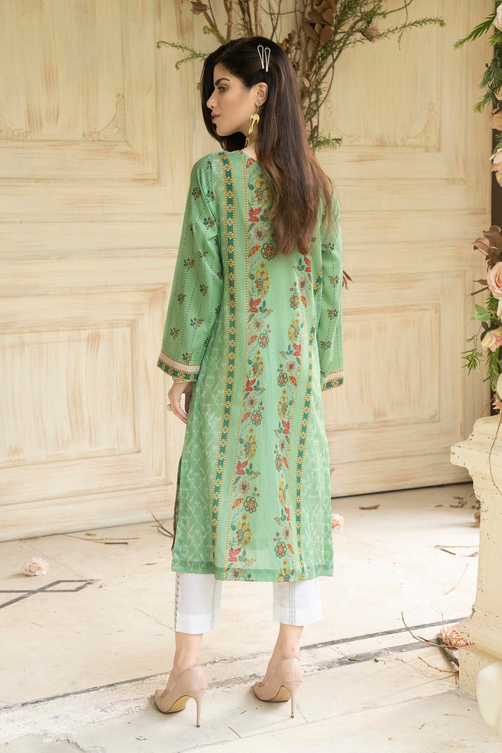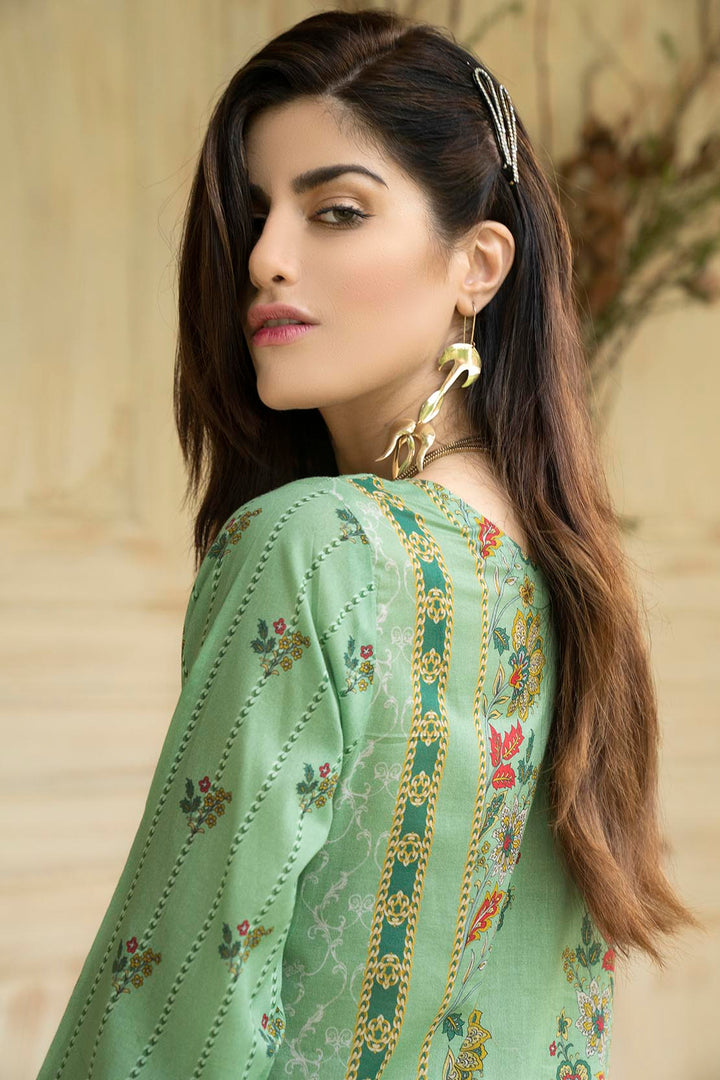 This ensemble featuring beautiful print on a light cerulean canvas sparks out exception femininity and grace.