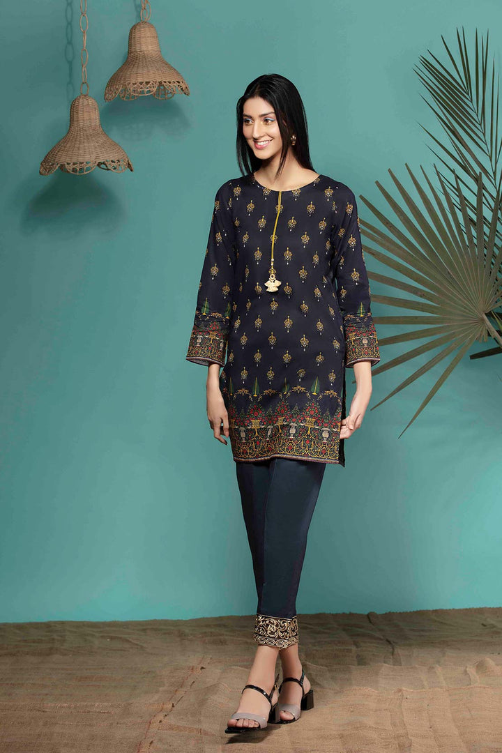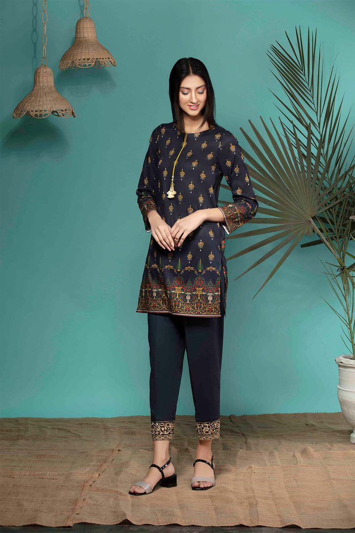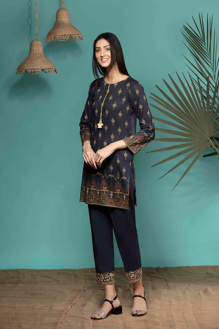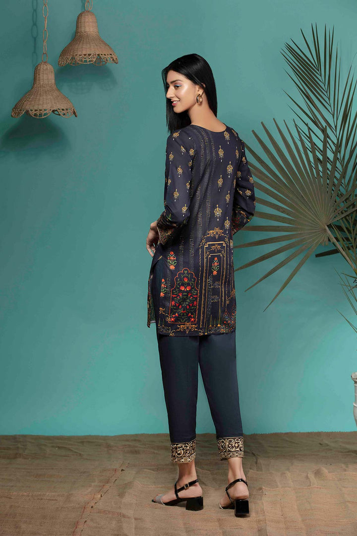 Reay-to-wear printed Lawn shirt, dyed Lawn trouser with embroidery