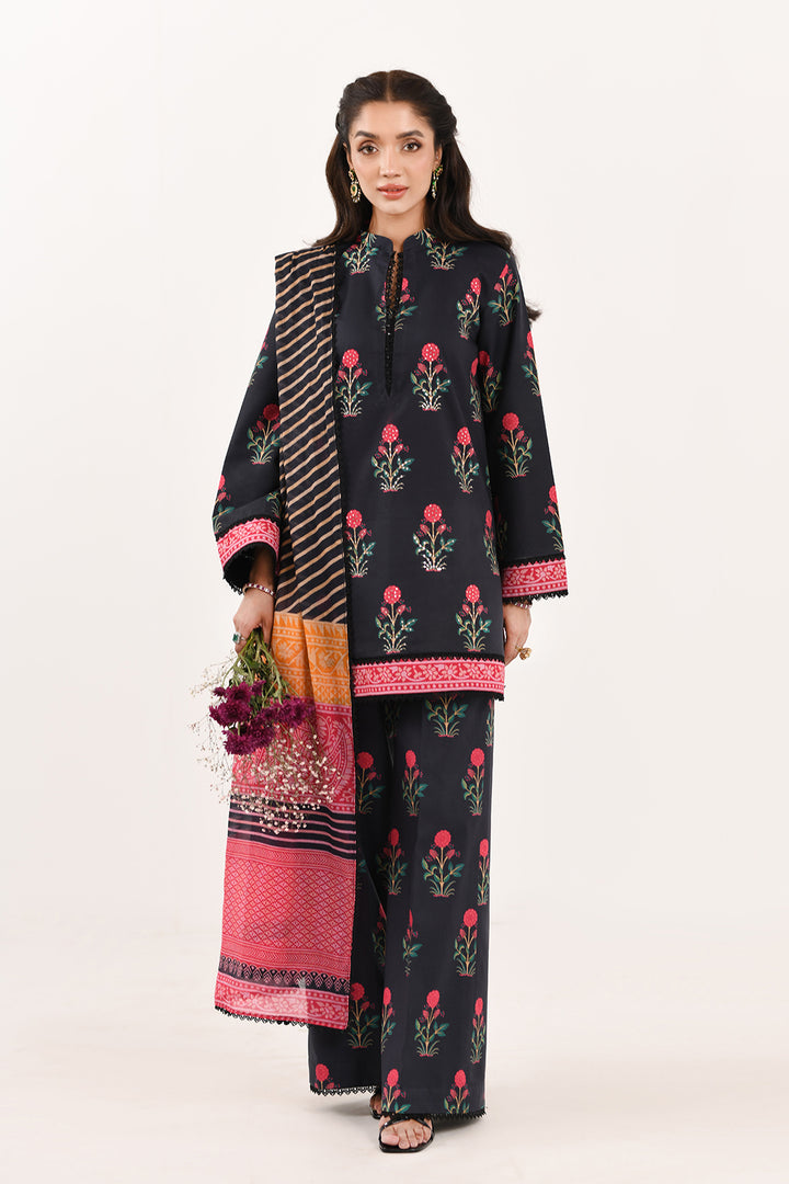 Elevate your seasonal style in our floral printed three-piece cambric suit.