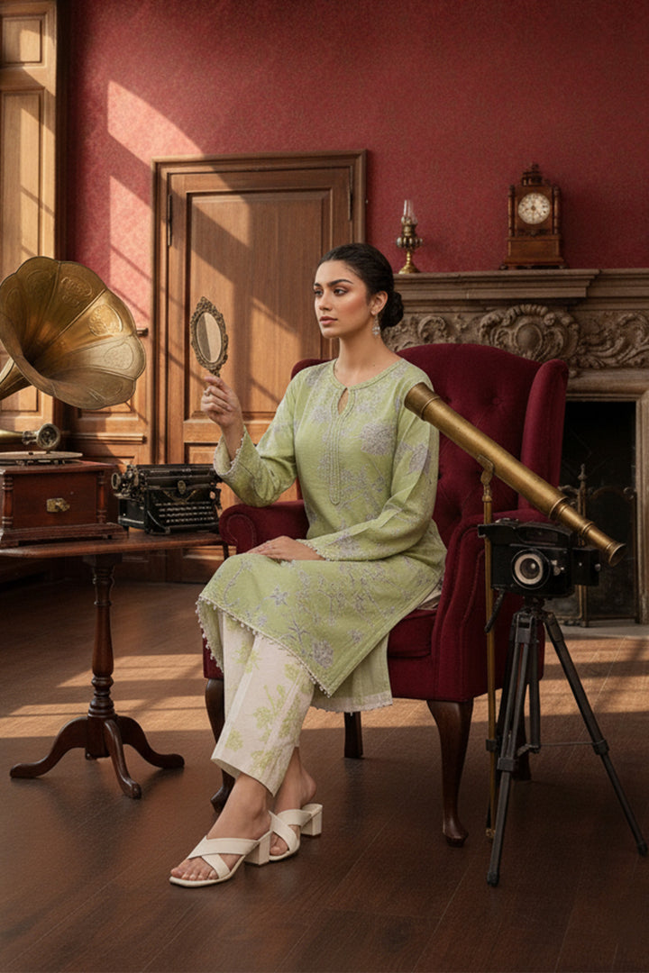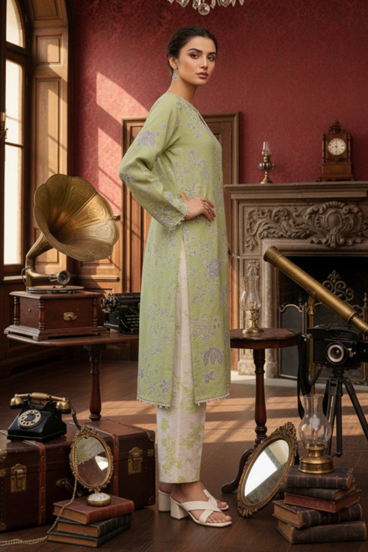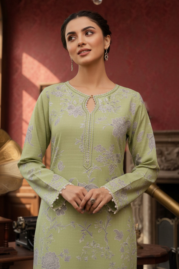 Mark your style statement this winter in our two-piece printed embroidered, 2pc suit.