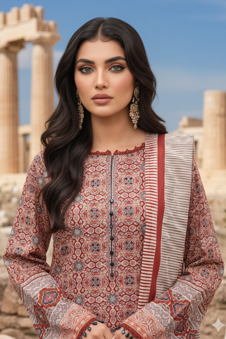 Rejoice in the winter chill with our Printed two-piece featuring a printed shirt and Dupatta.