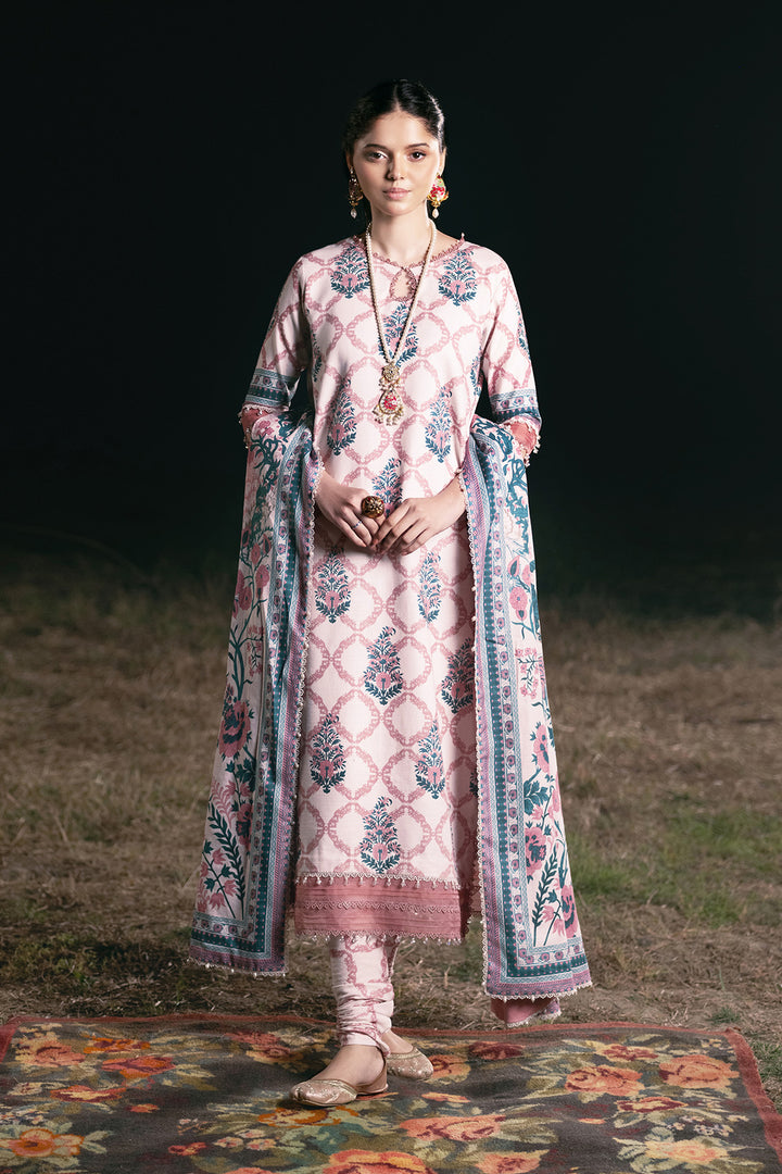 Curate the perfect winter outfit with our three-piece printed khaddar suit.