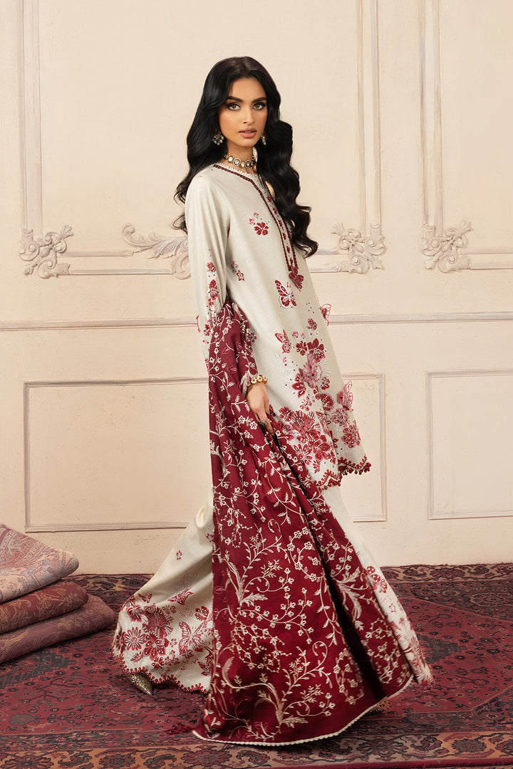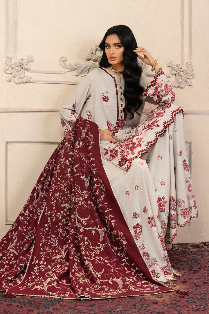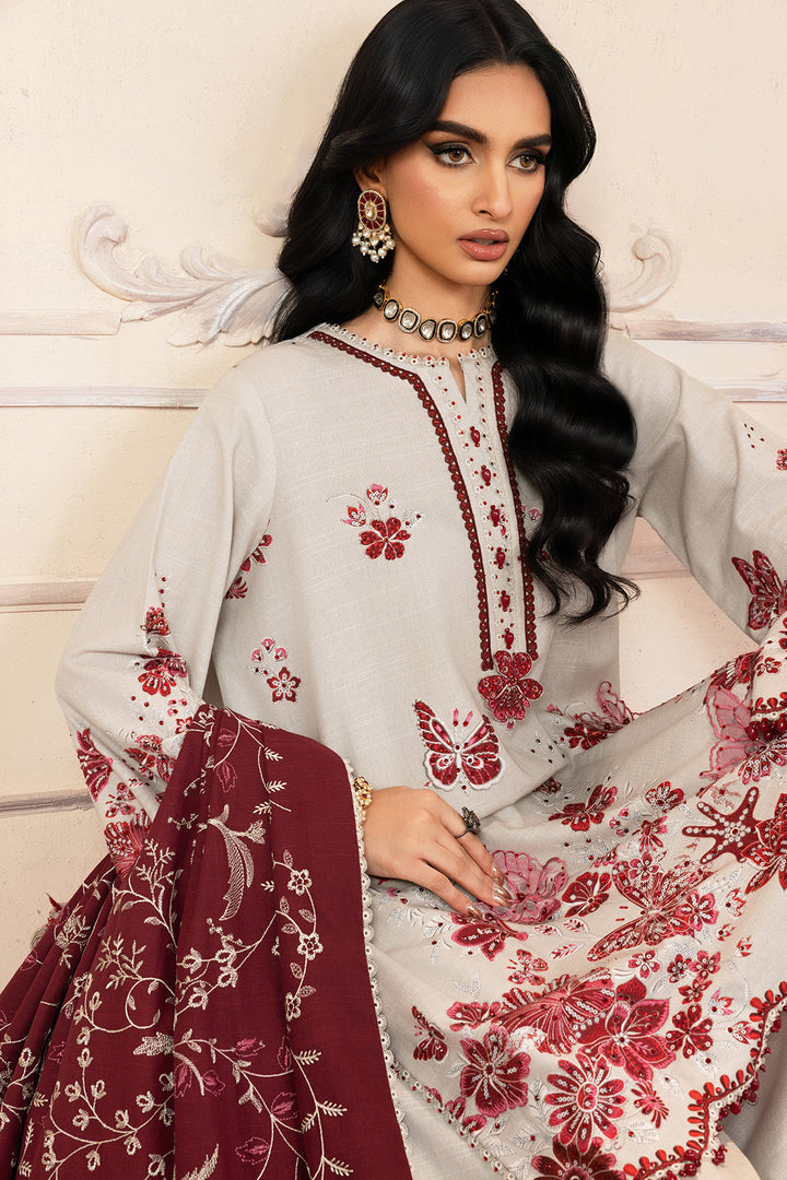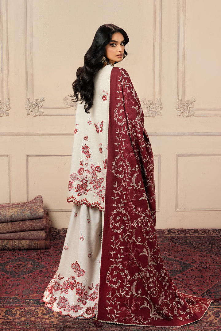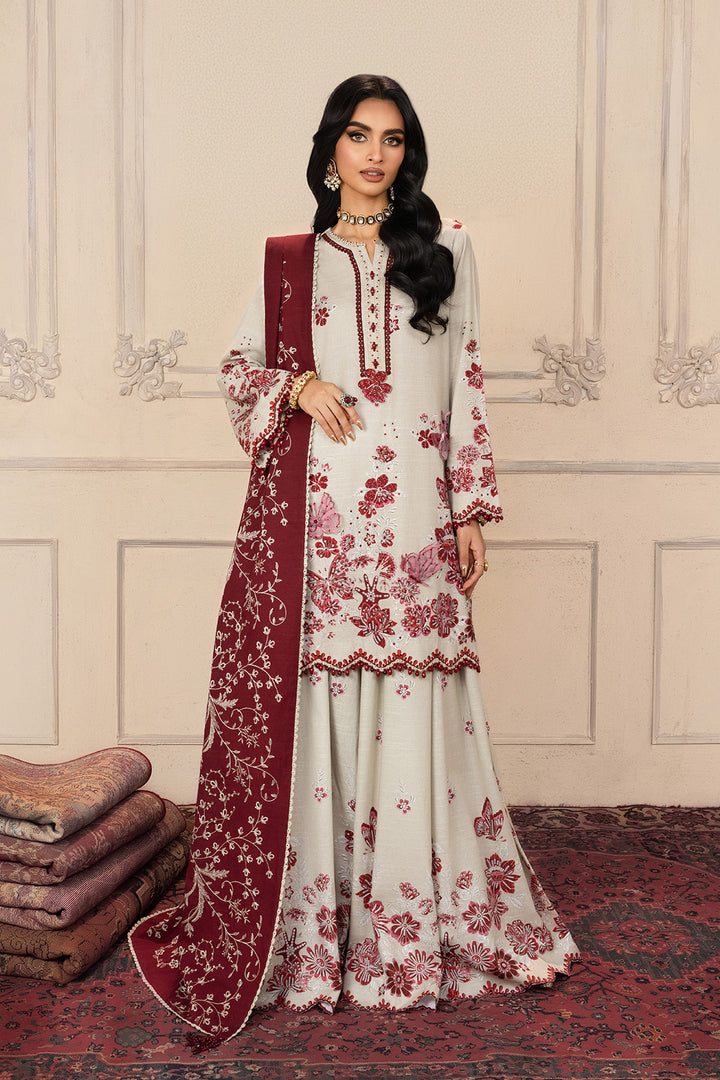 This print is for the woman whose reinventing her stylish wardrobe with grace, and quiet power. Winter Premium Three - Piece Khaddar suit features heavenly intricated embroidered khaddar shawl with Printed Khaddar shirt & trousers balanced by 3D Embroidered patch motifs.