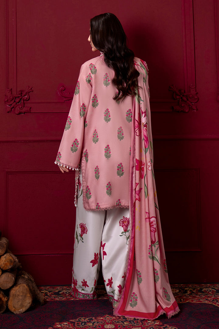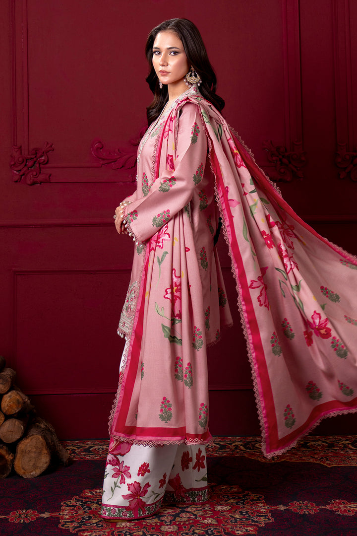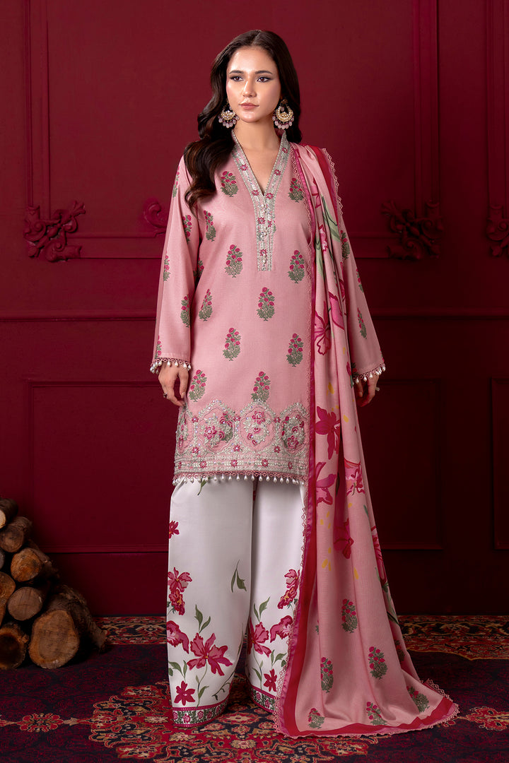 Revamp your Winter style with our Embroidered Printed Linen suit. Make a statement with our three-piece winter ensemble featuring a printed embroidered Linen shirt and dupatta & printed trouser. Perfect addition in your Winter Collection!