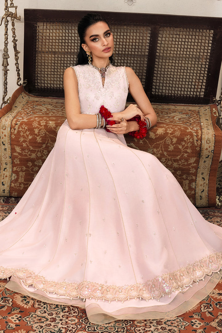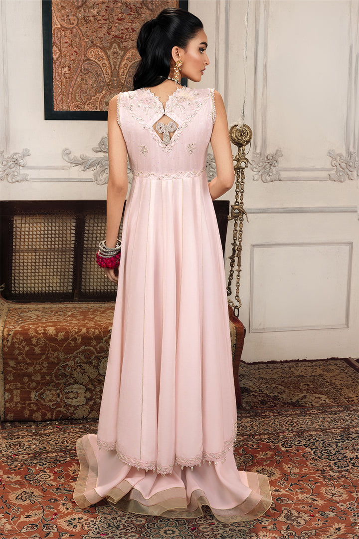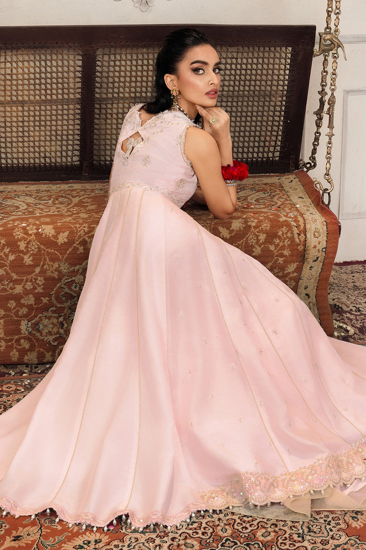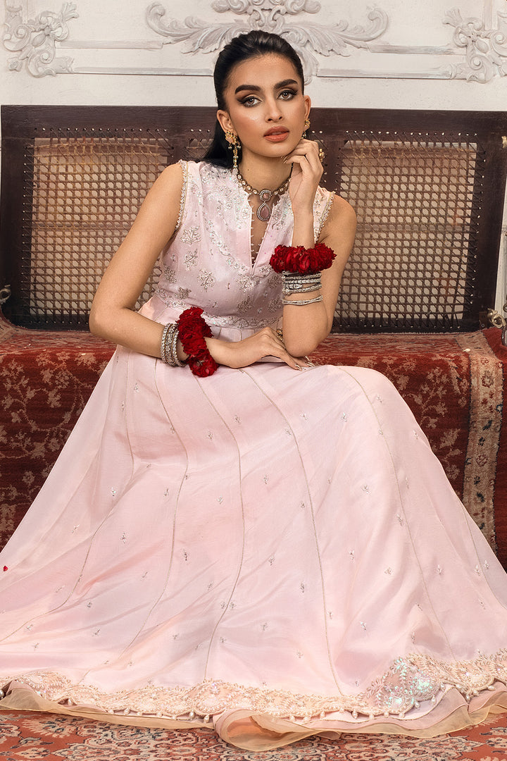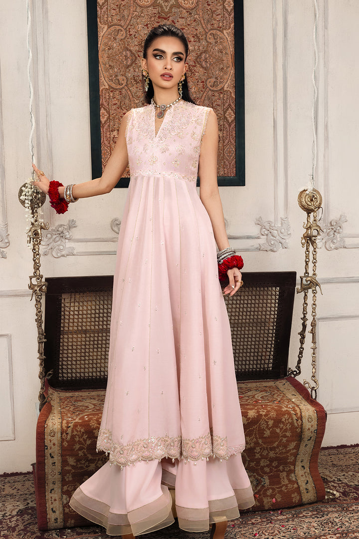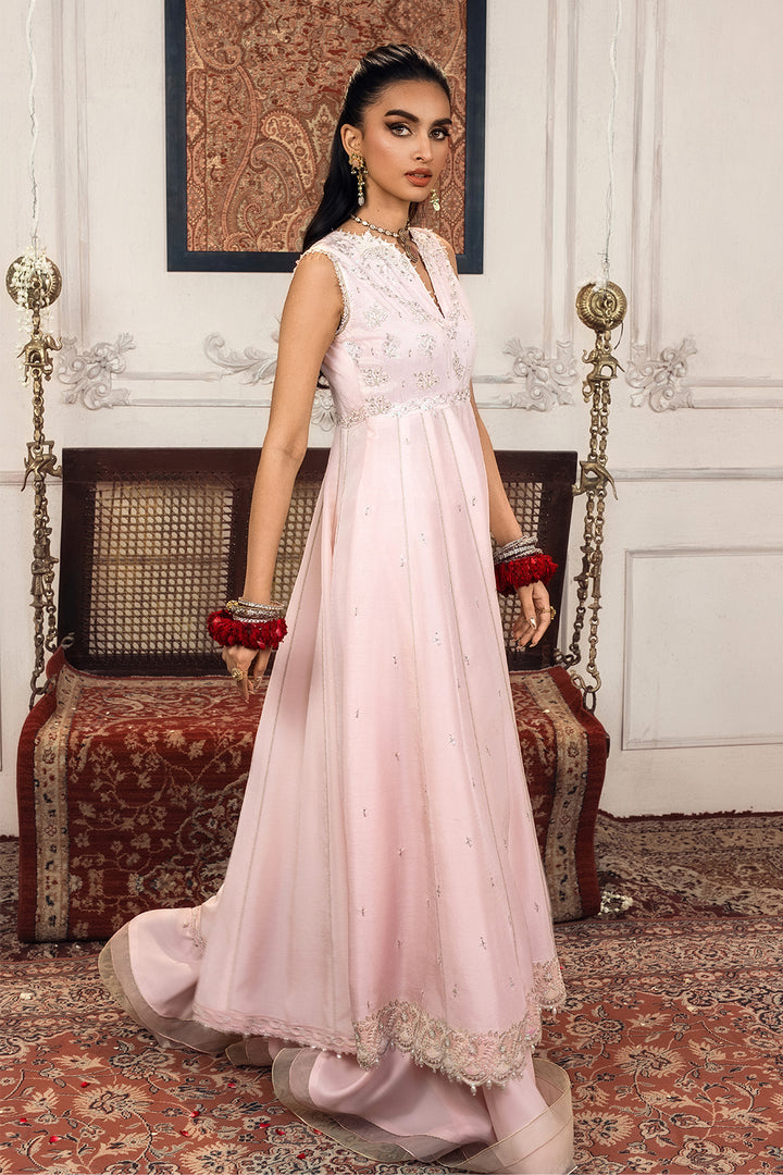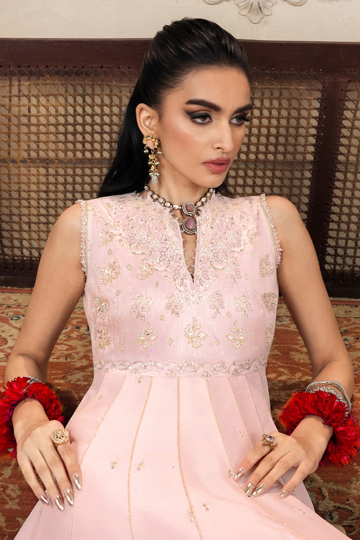 Take cues from our muse and elevate your style with our two-piece embroidered raw silk ensemble featuring pastel color palette.