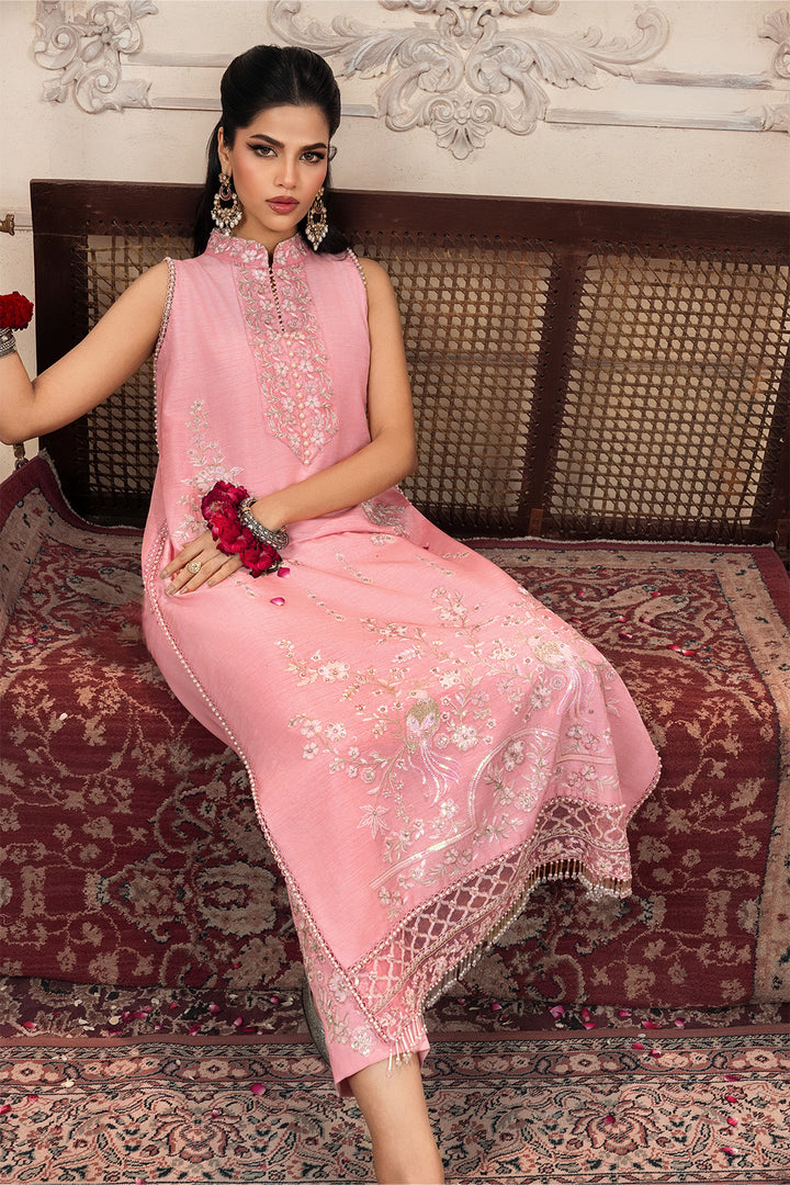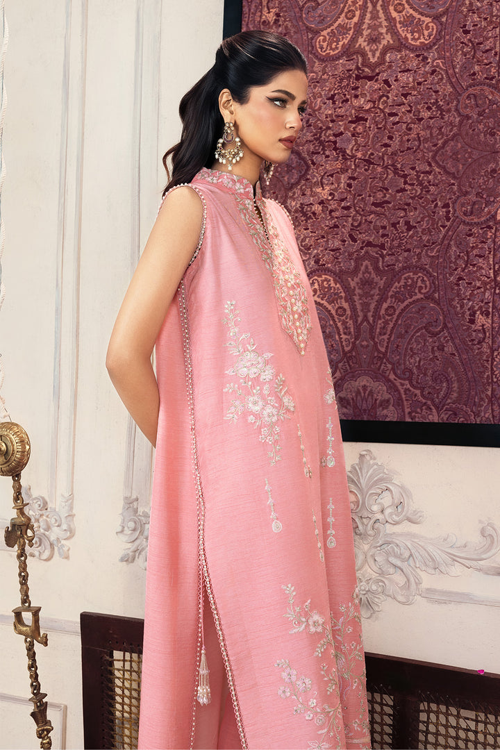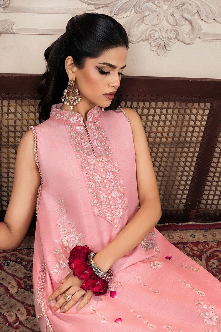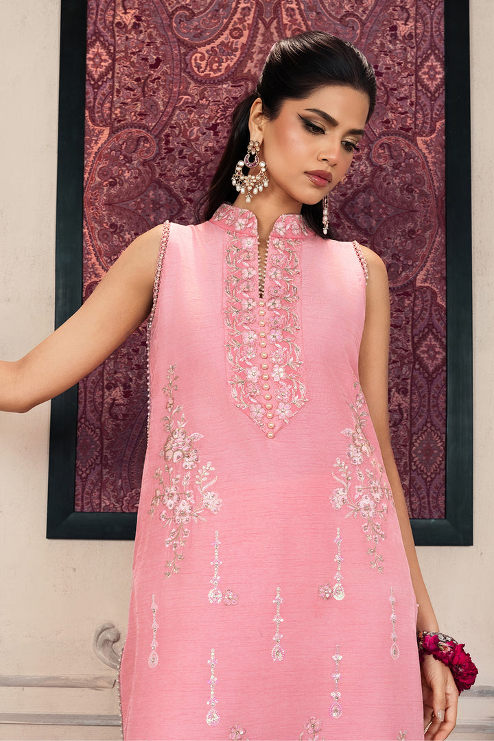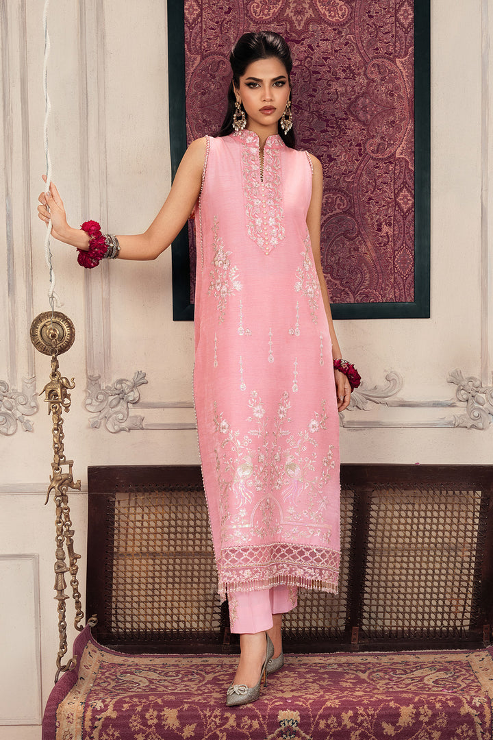 Elevate your style with our two-piece embroidered raw silk ensemble featuring a eye soothing color palette and intricate embroidered patterns.