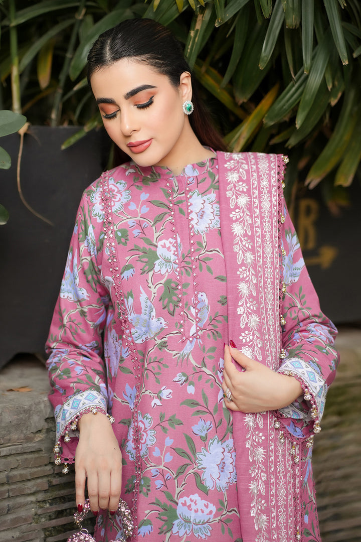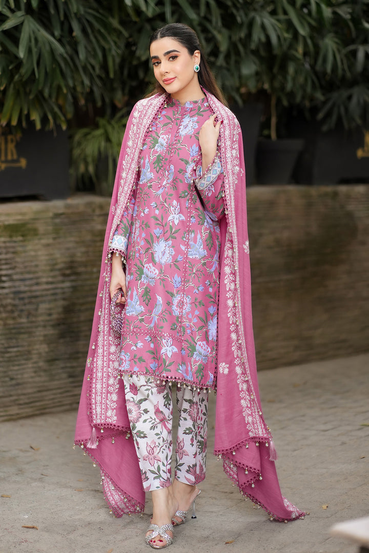 Style with grace in our three-piece Printed Embroidered Karandi ensemble featuring an artistically crafted embroidered dyed Karandi Shawl with printed Karandi Shirt and Trousers. Uplift your stylish wardrobe this winter season.