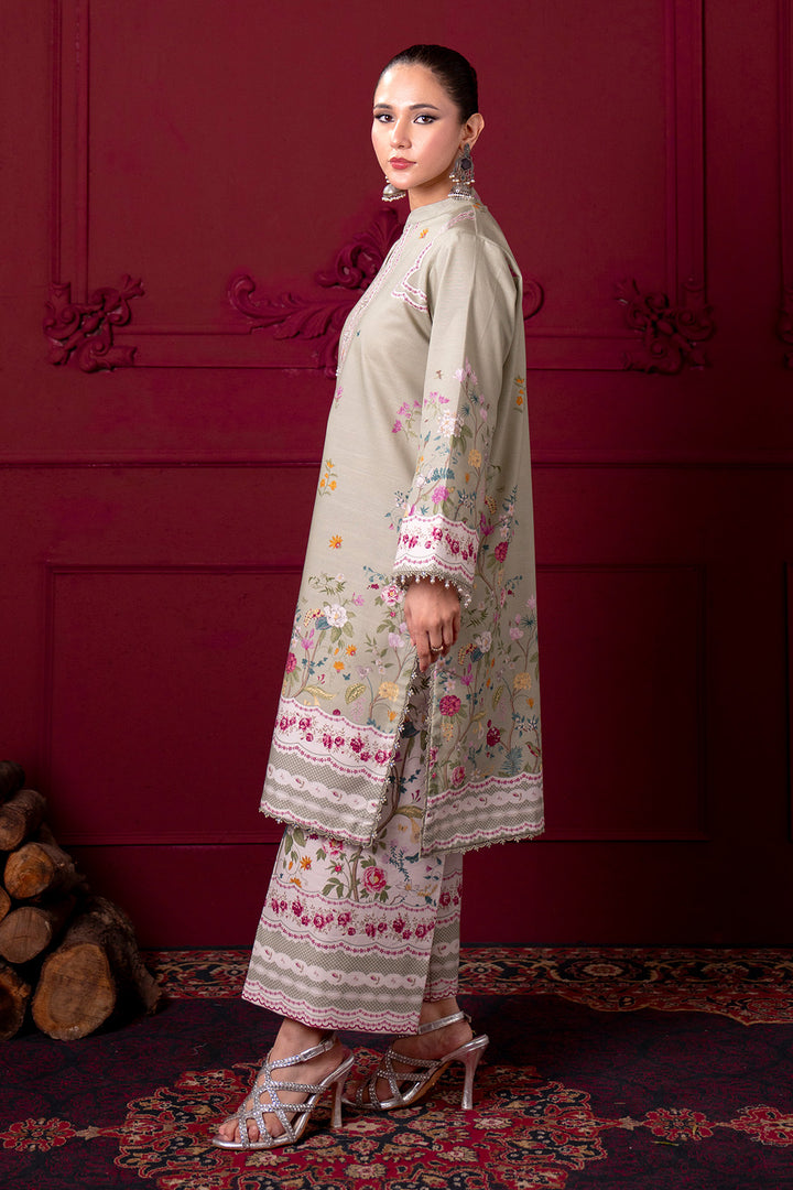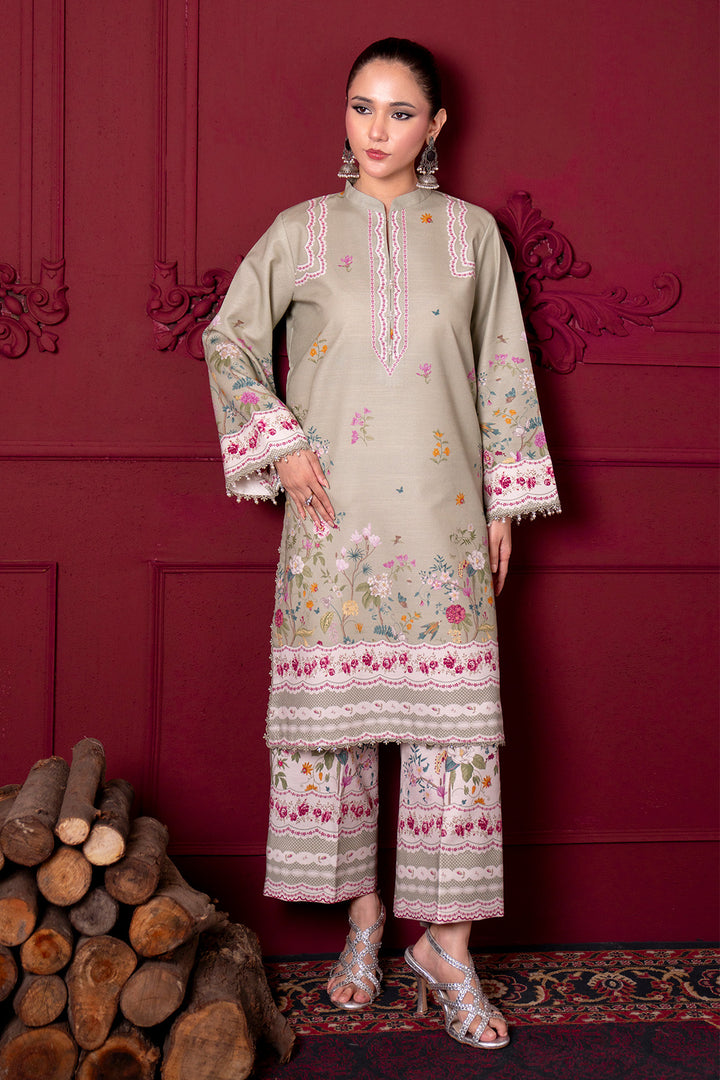 Step-up your winter style with this Printed Karandi 2 - PC Suit. This two piece article includes a printed Shirt & Printed trouser, ideal for your daily wear Winter Collection.