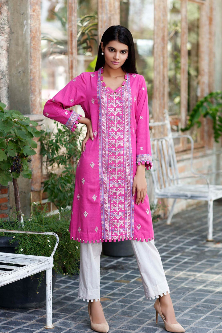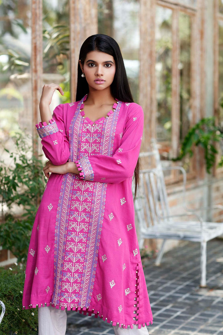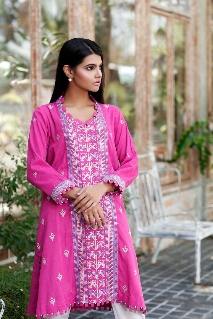 Dyed 3.1m Khaddar shirt with embroidered front, embroidered sleeves & embroidered border