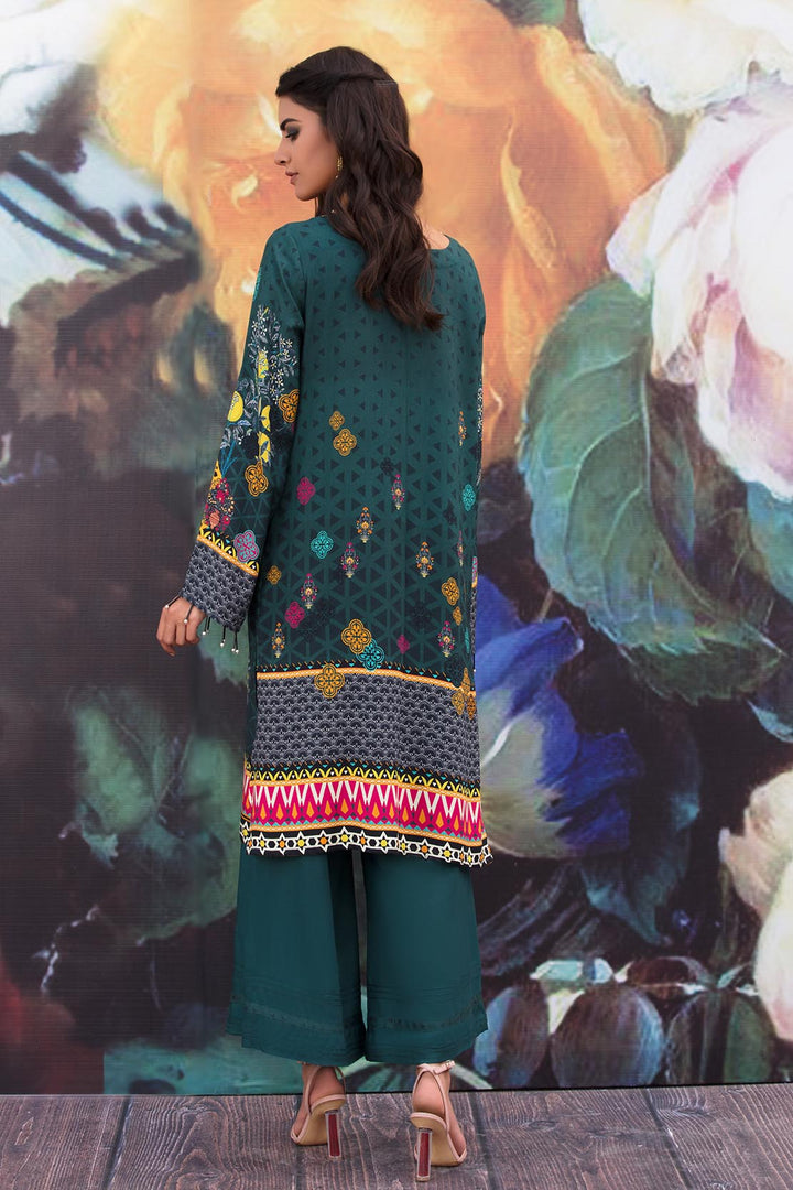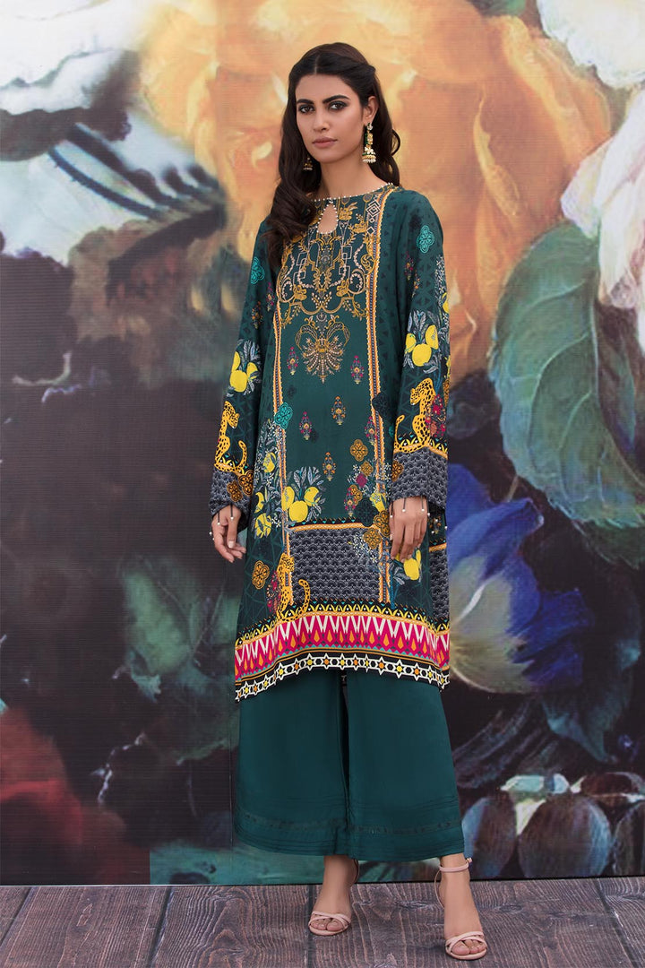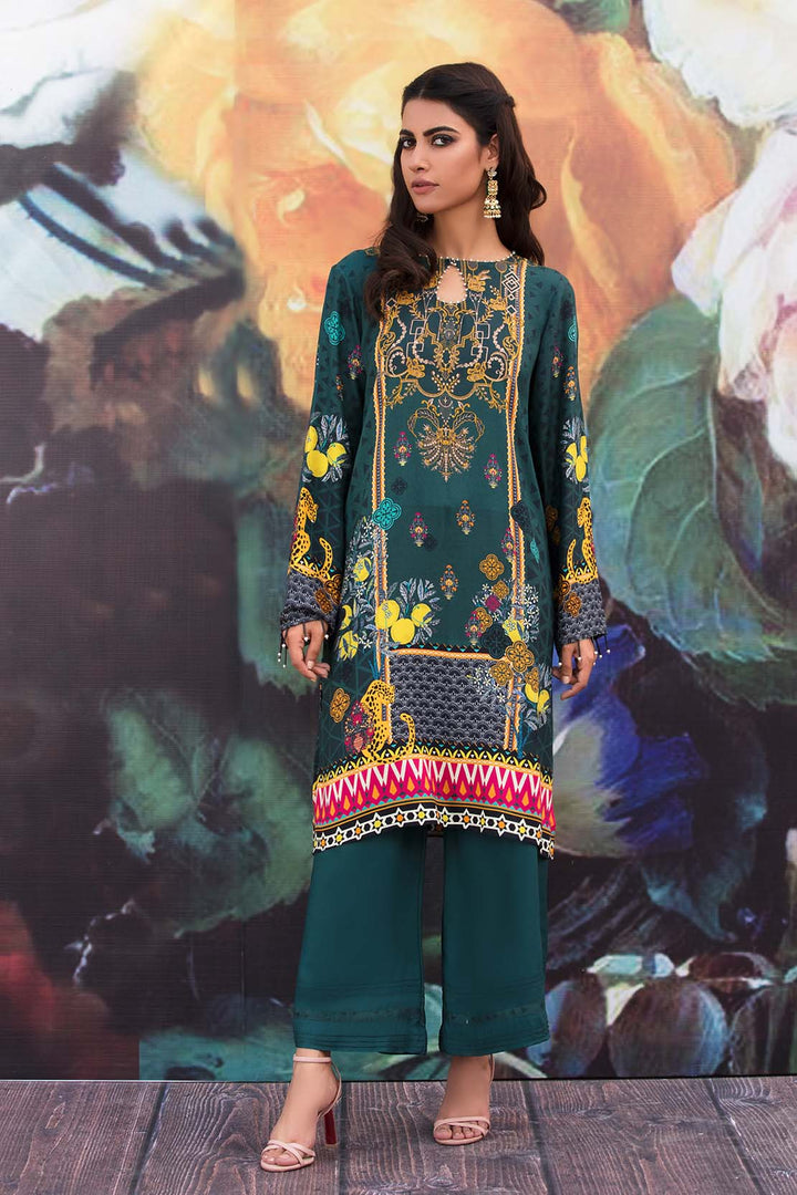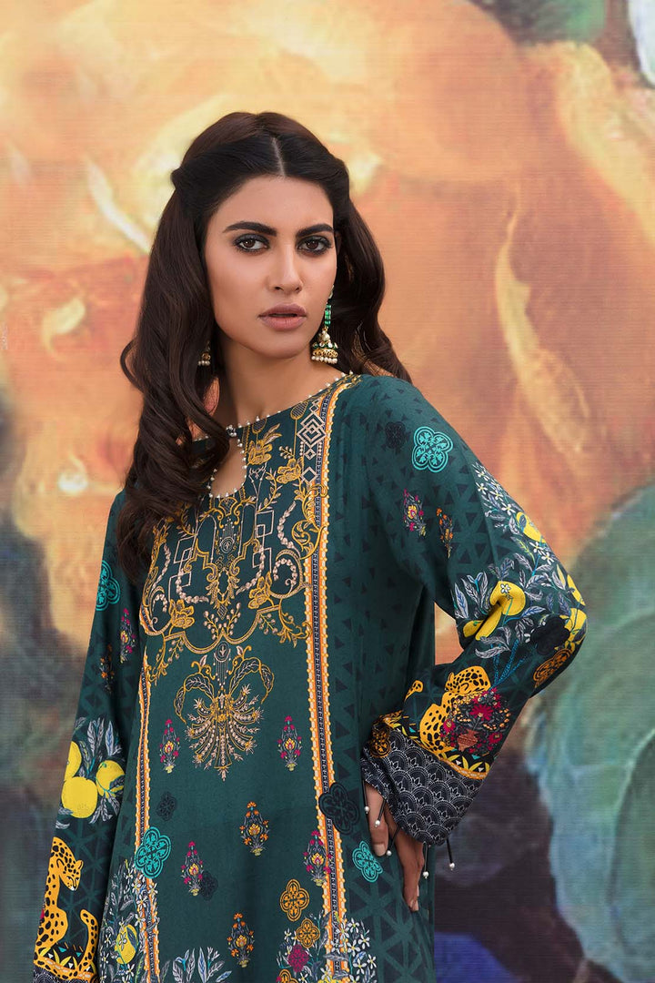 A perfect tone of teal with a beautiful digital flora and fauna print including pops of yellow and mustard to make your winter wardrobe less boring.