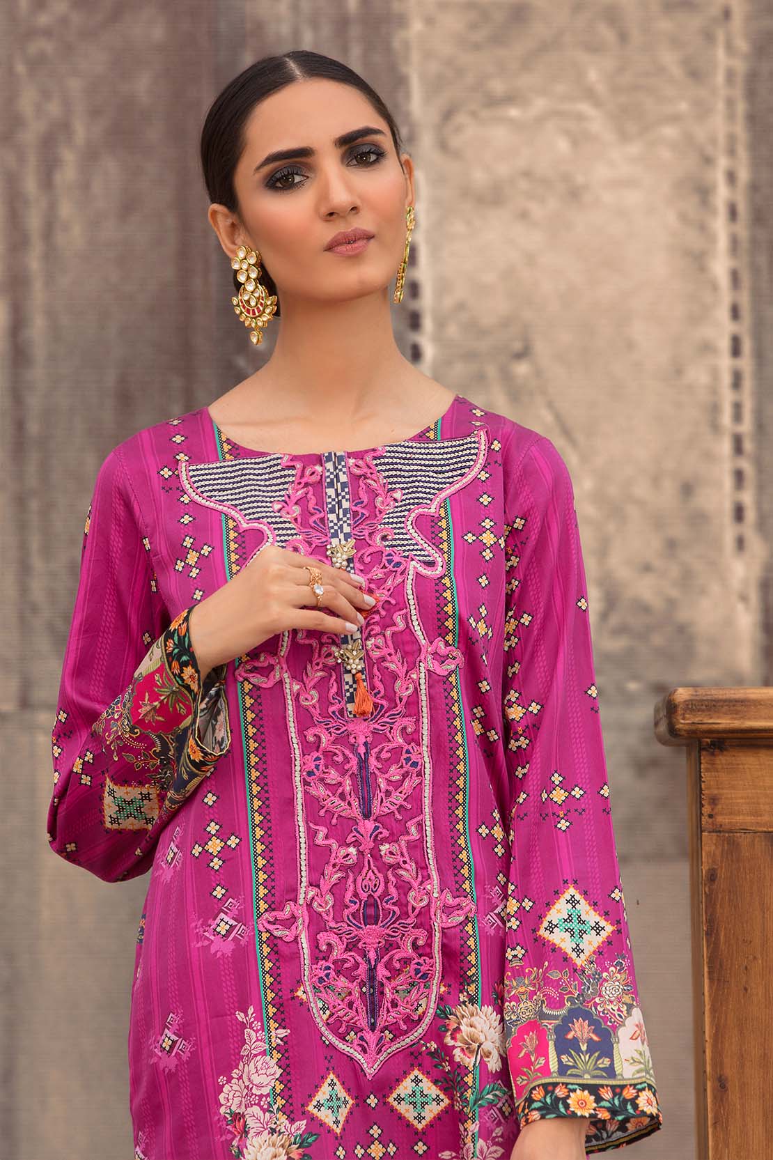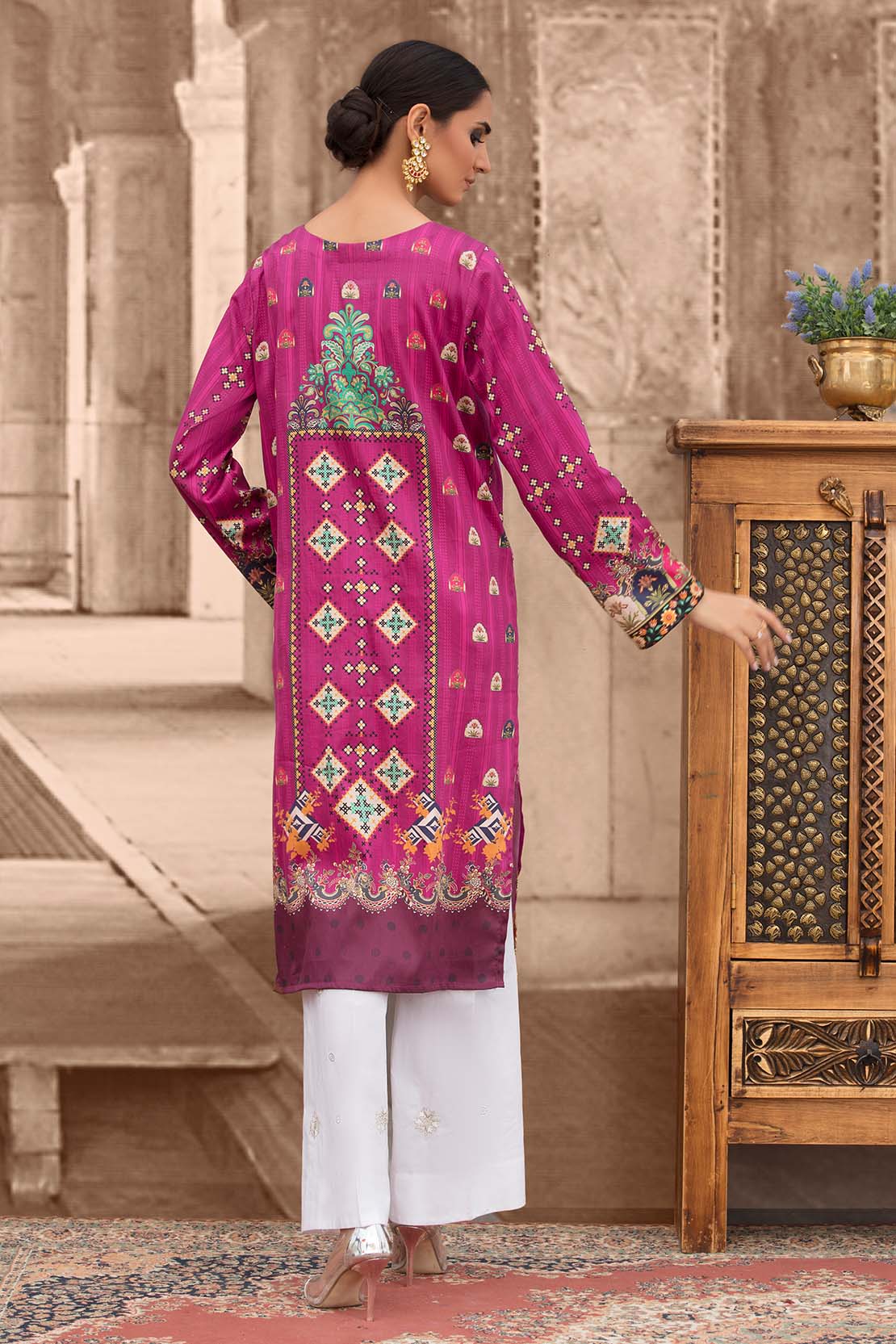 This bright pink canvas in Sateen fabric is illustrated with ethnic and modern florals and arches to create a beautiful piece for your daily wear.