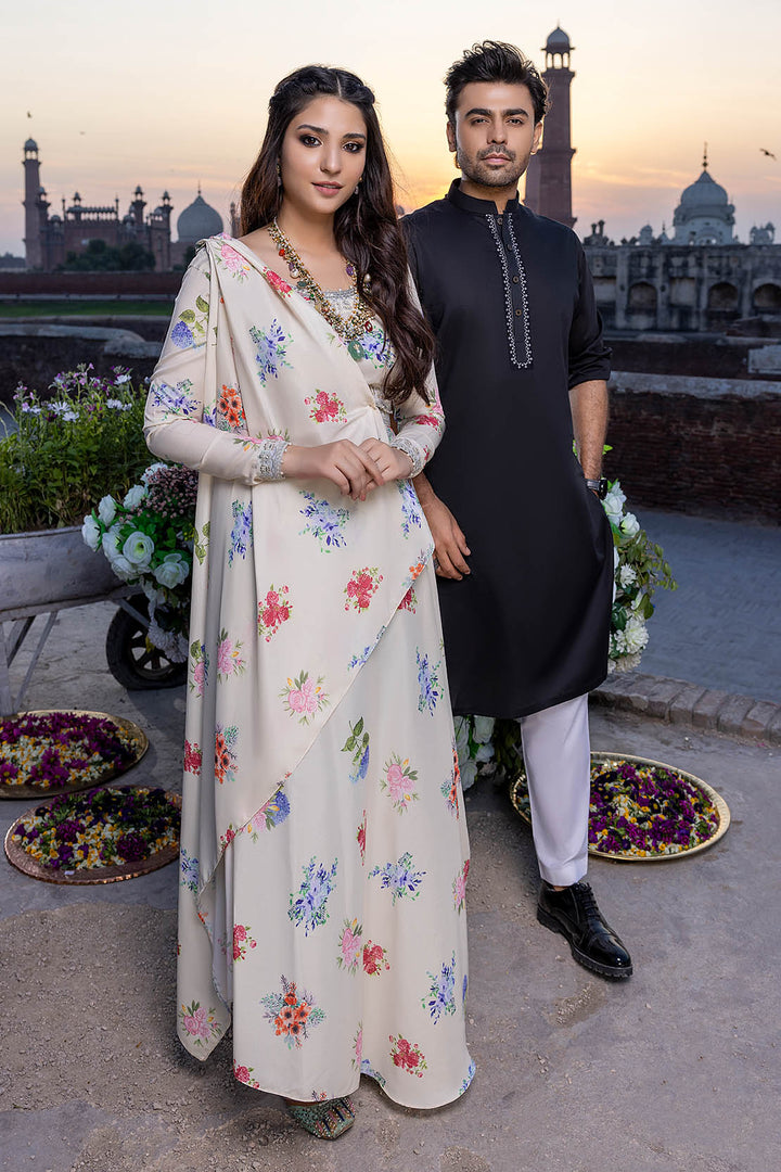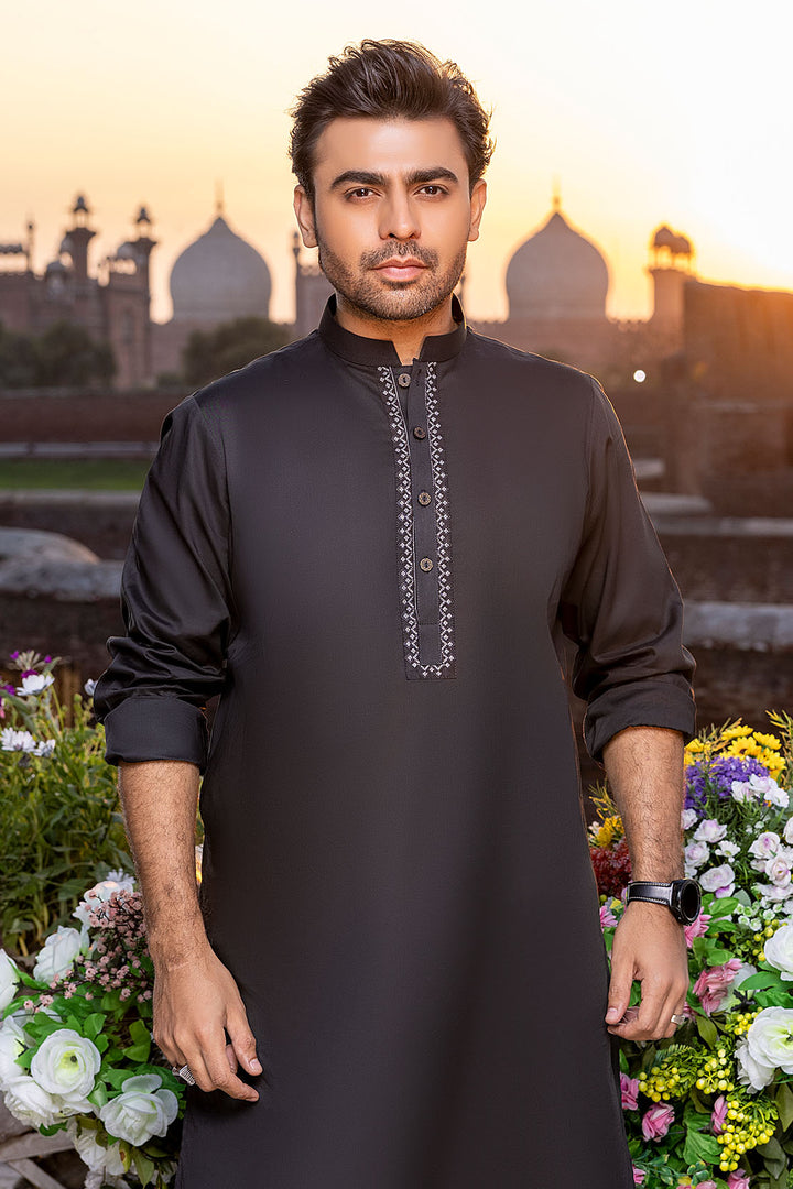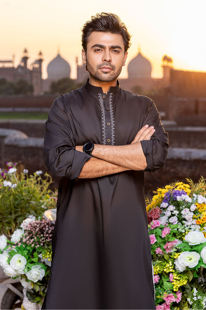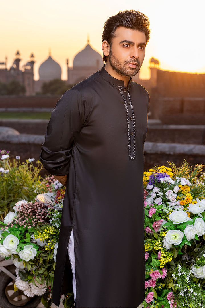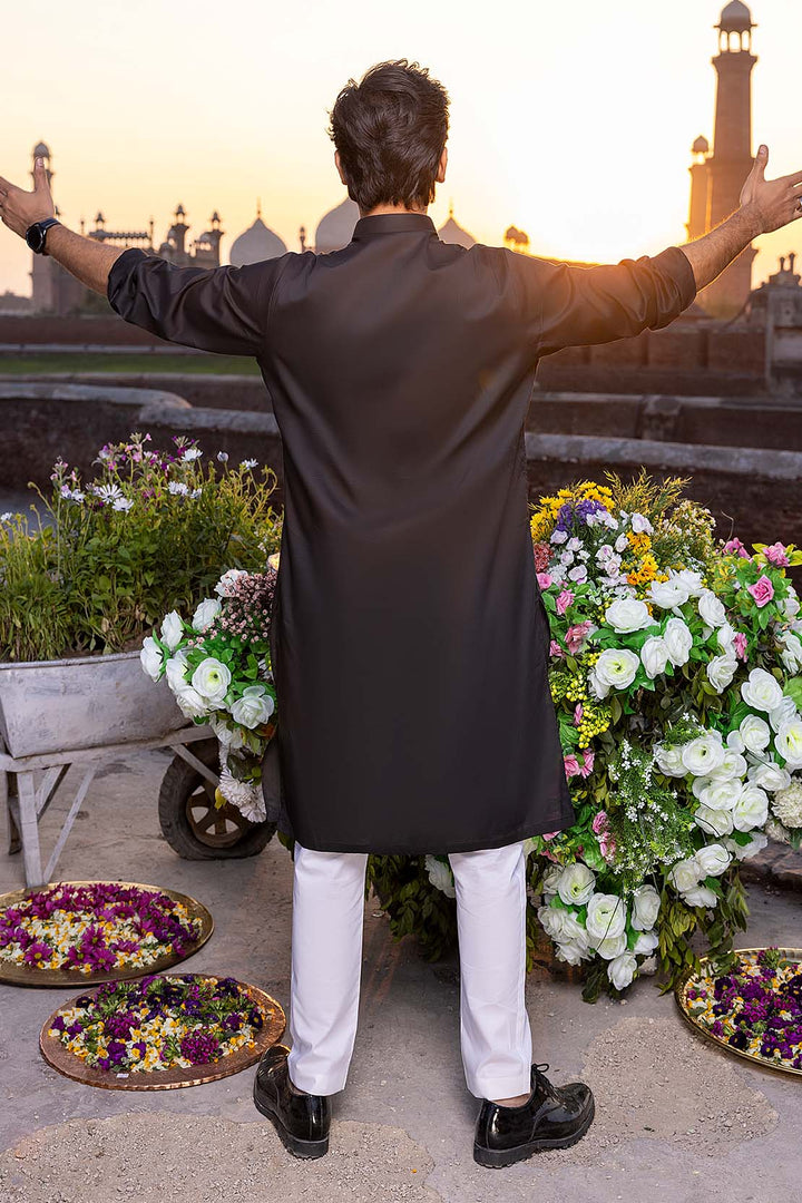 Look dapper in our two-piece embroidered black kurta with white trousers this season. It is surely going to transform your summer wardrobe.
