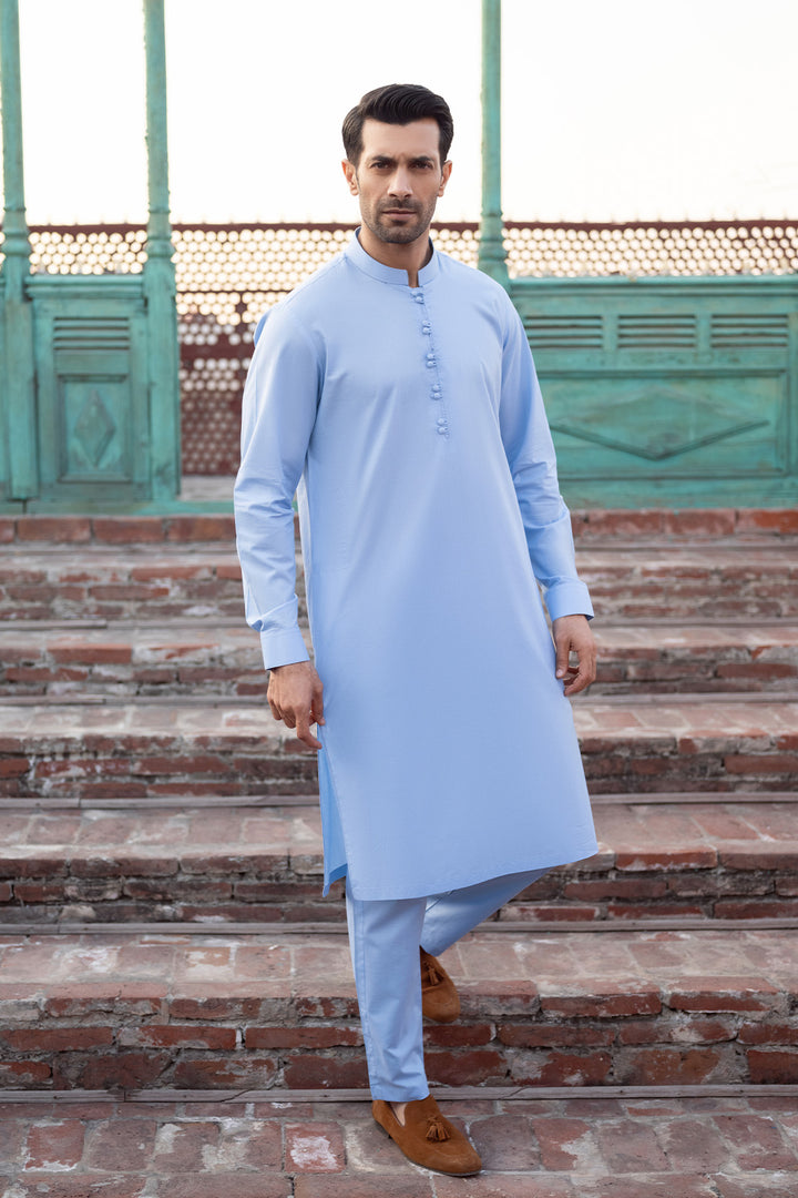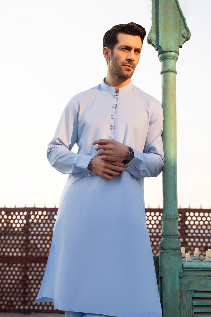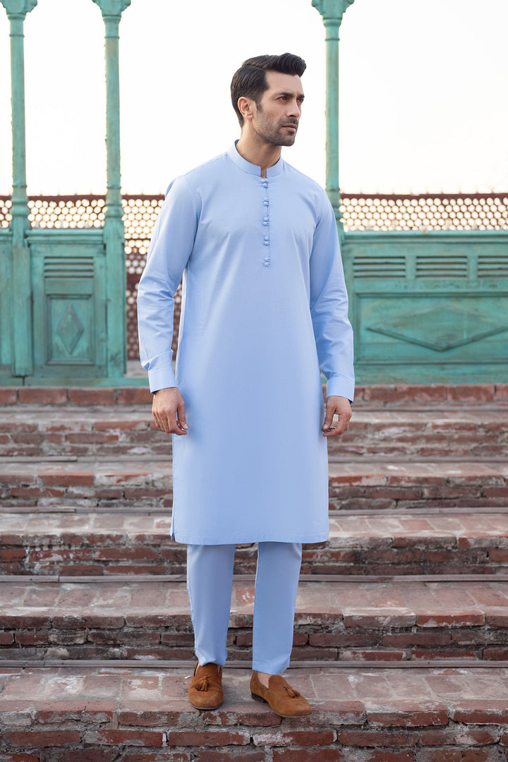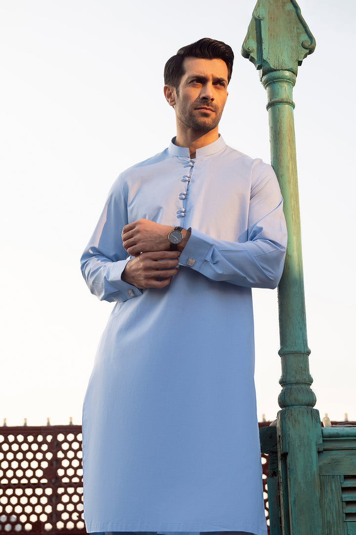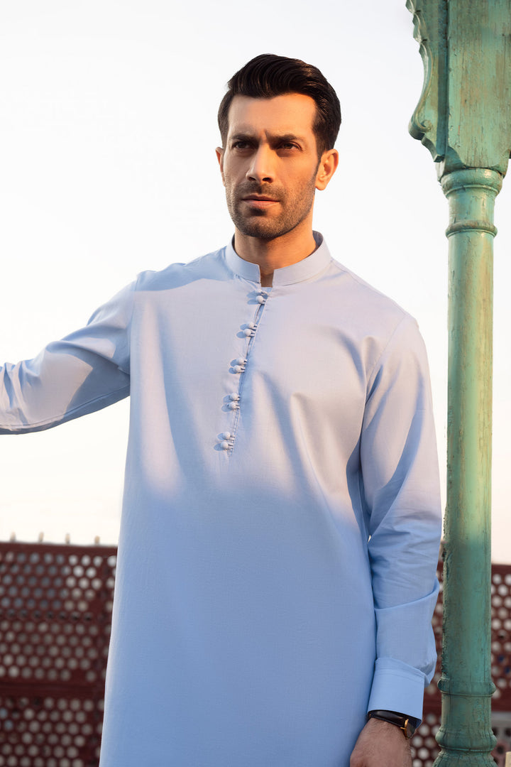 A perfect blend of tradition and contemporary style, this Sky Blue tone is all about quality and comfort. The soft, breathable material ensures you look cool and stylish, making it the ultimate pick for a polished yet relaxed look in warmer months.