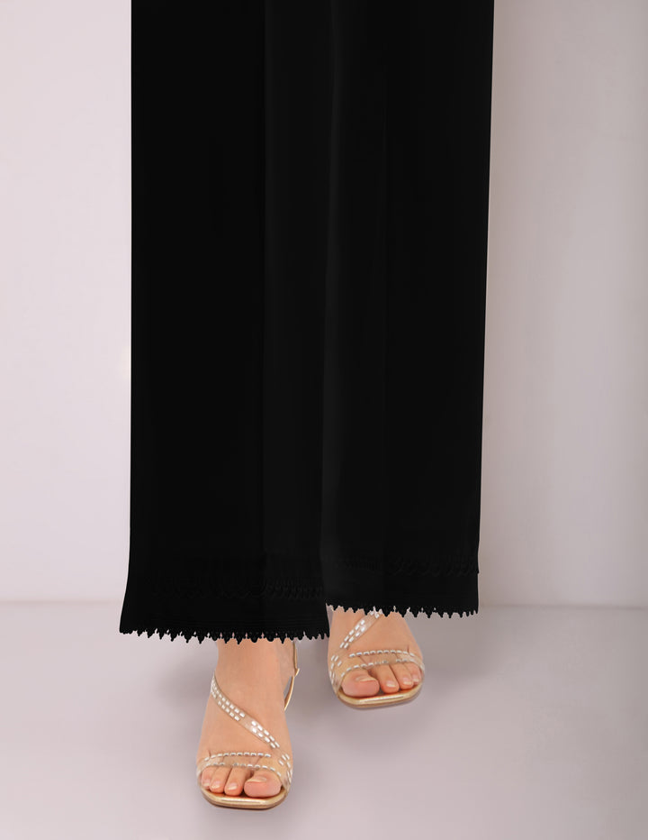 Finish off your eid looks with our black lawn trousers with border detailing.